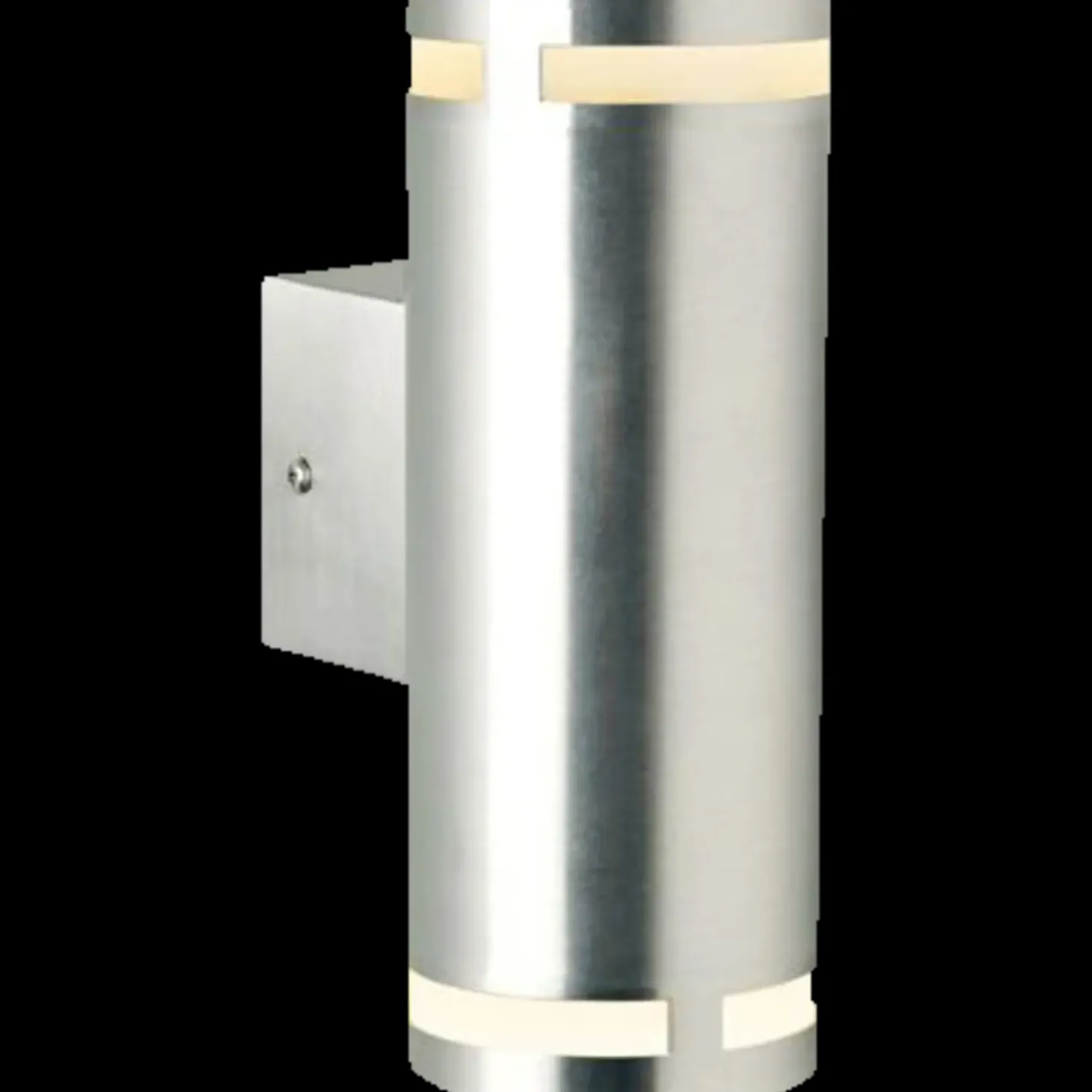 En flot Nordlux væglampe fremstillet i aluminium med klar glas, der både kan lyse oppe og ned for bedre belysning. Nordlux lampen er konstrueret efter IP54-standarden, hvilket gør den særligt velegnet til udendørs brug.