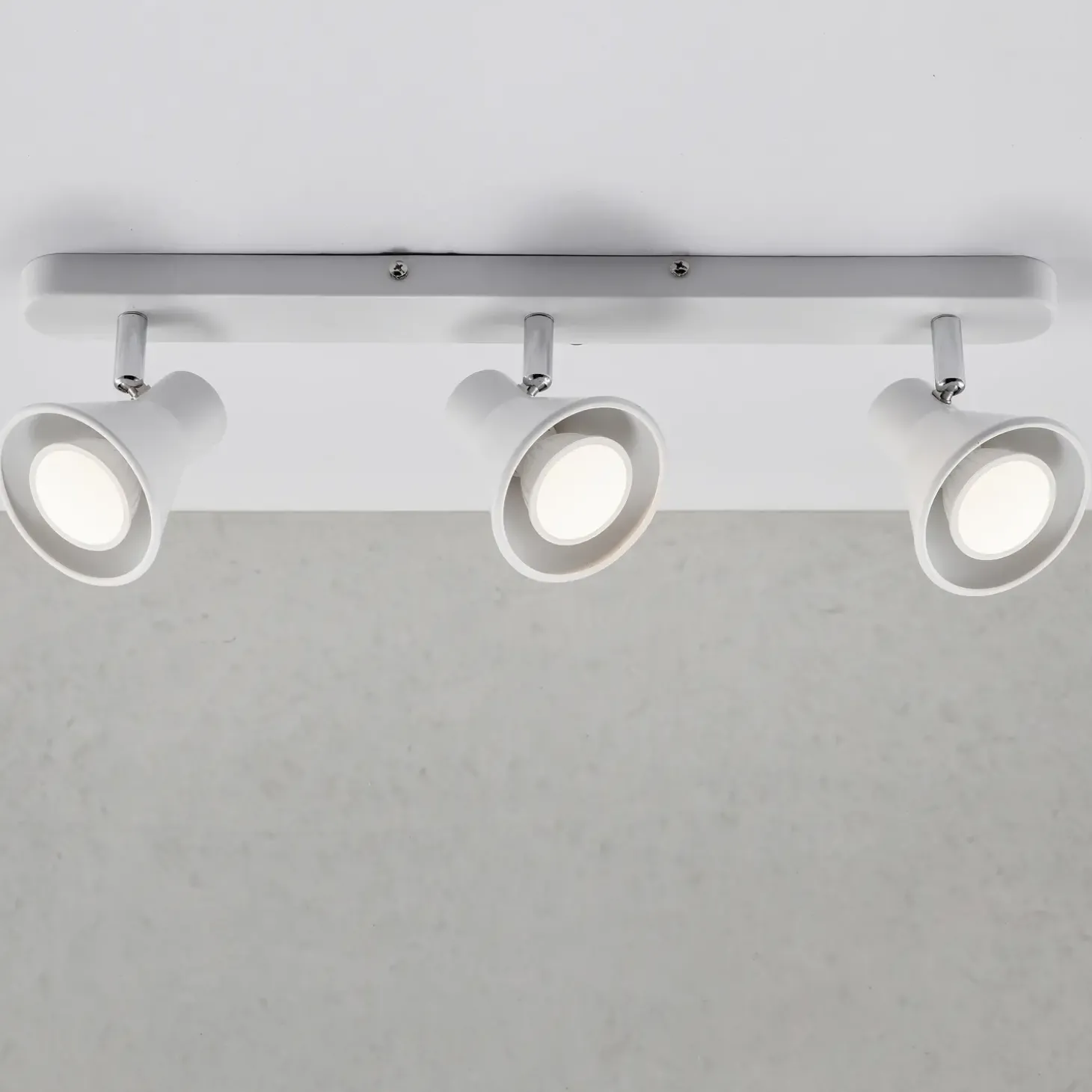 Eik-serien er yderst dekorativ i sin enkelthed. Skærmens facon skaber en behagelig lysflade, som giver et behageligt og smukt lysskær. Diskret og praktisk spotlampe med tre spots i hvid. Denne spotlampe kan placeres forskellige steder i boligen og skabe fokus eller hygge alt efter, hvordan den placeres.