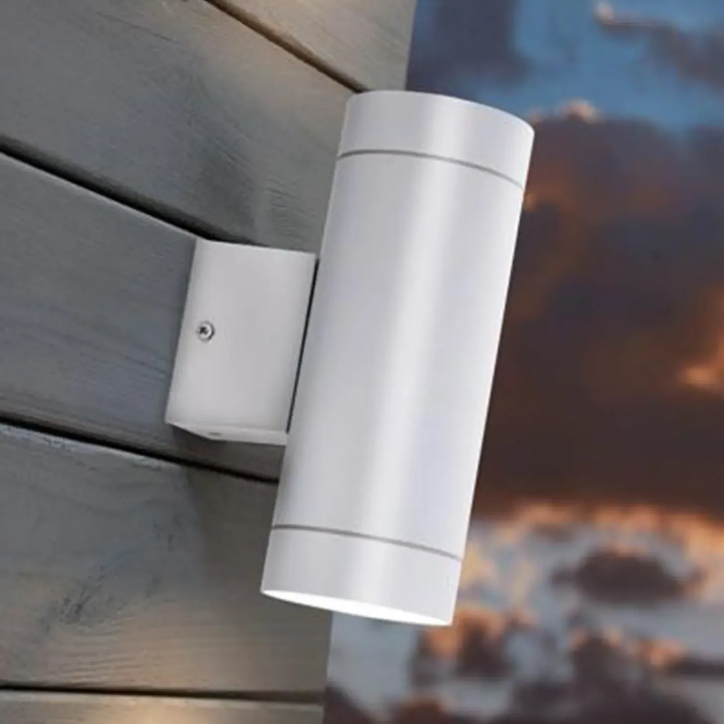 Med sine to lyskilder giver Nordlux Tin Maxi lampen et helt særligt lys, der både vises oppe og nede på lampen, så du får oplyst flere dele af væggen. Tin Maxi væglampen er fremstillet af metal og glas og den hvide farve giver et tidløs og enkelt look til dit hjem. Nordlux væglampen er ideel til flot belysning ved hoveddøren eller carporten, hvor du ønsker et smukt strømlinet design og elegant lys.