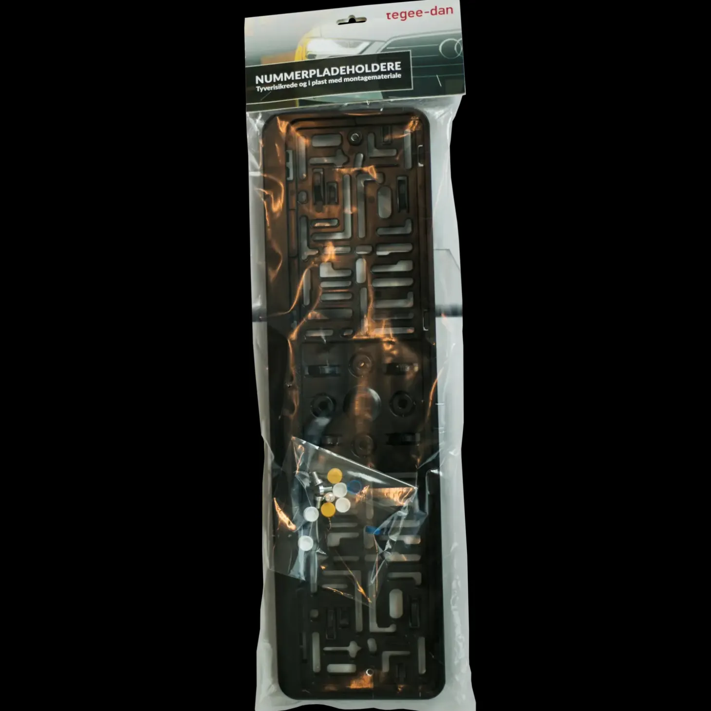 Nummerpladerammer, hvor nummerpladen skrues fast i selve rammen med 2 stk. låseskruer.