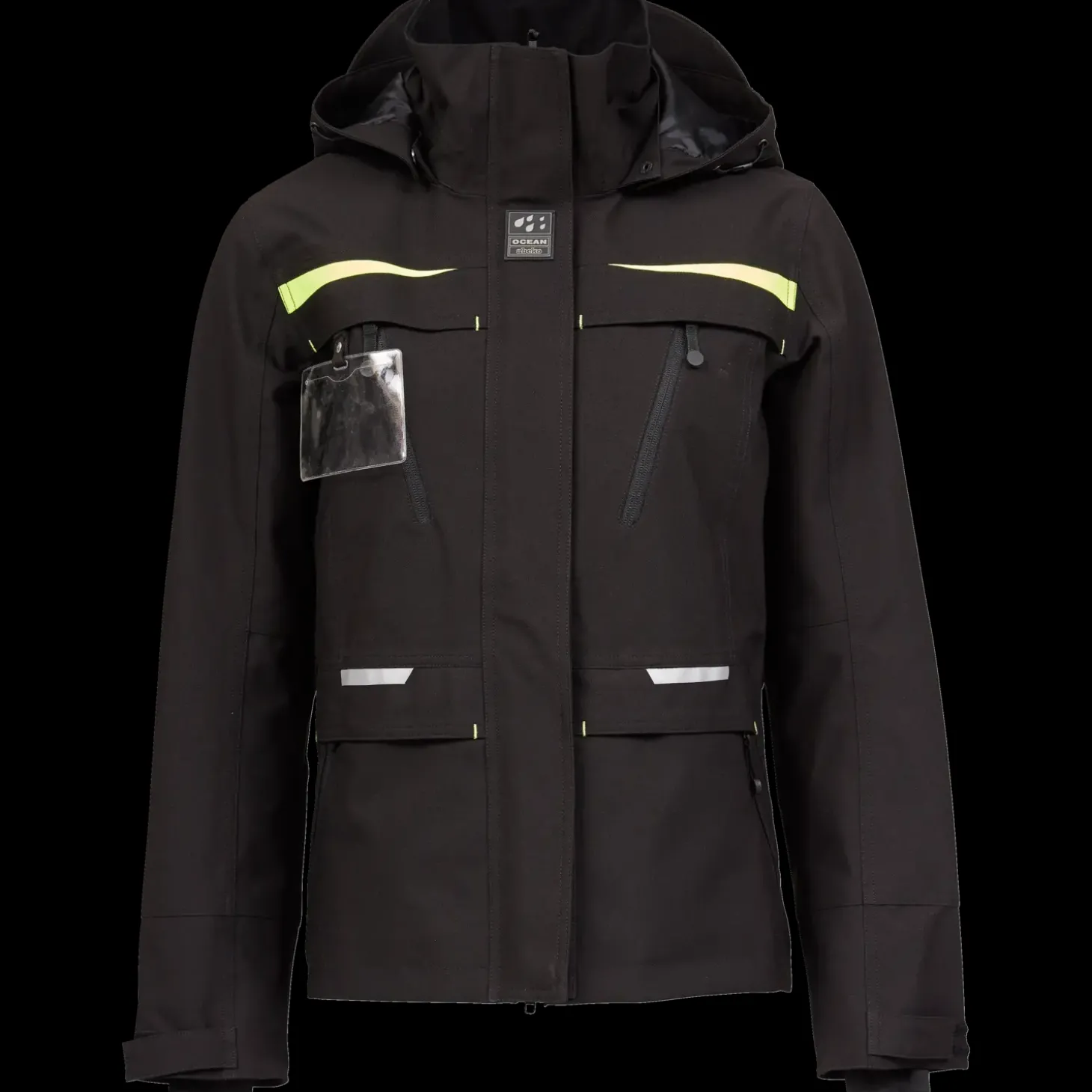Rocky Stretch fra Ocean er en funktionel og komfortabel arbejdsjakke i kraftigt 4-vejs stretch materiale. Sømmene er dobbeltsyede og tapede for optimal vandtæthed. YKK® lynlås og dobbelt overfald i front med knap- og velcrolukning. Dens brystlommer er med lynlås, og aftagelig ID-lomme samt D-ring i front. To skrålommer med lynlås samt en aftagelig og justerbar hætte. Jakken har velcrojusterbare manchetter med indvendig håndledsfor, og en velcrojustering i livet. Denne åndbare Ocean dame-regnjakke kan holde dig tør hele dagen, mens den samtidig er komfortable at have på.
