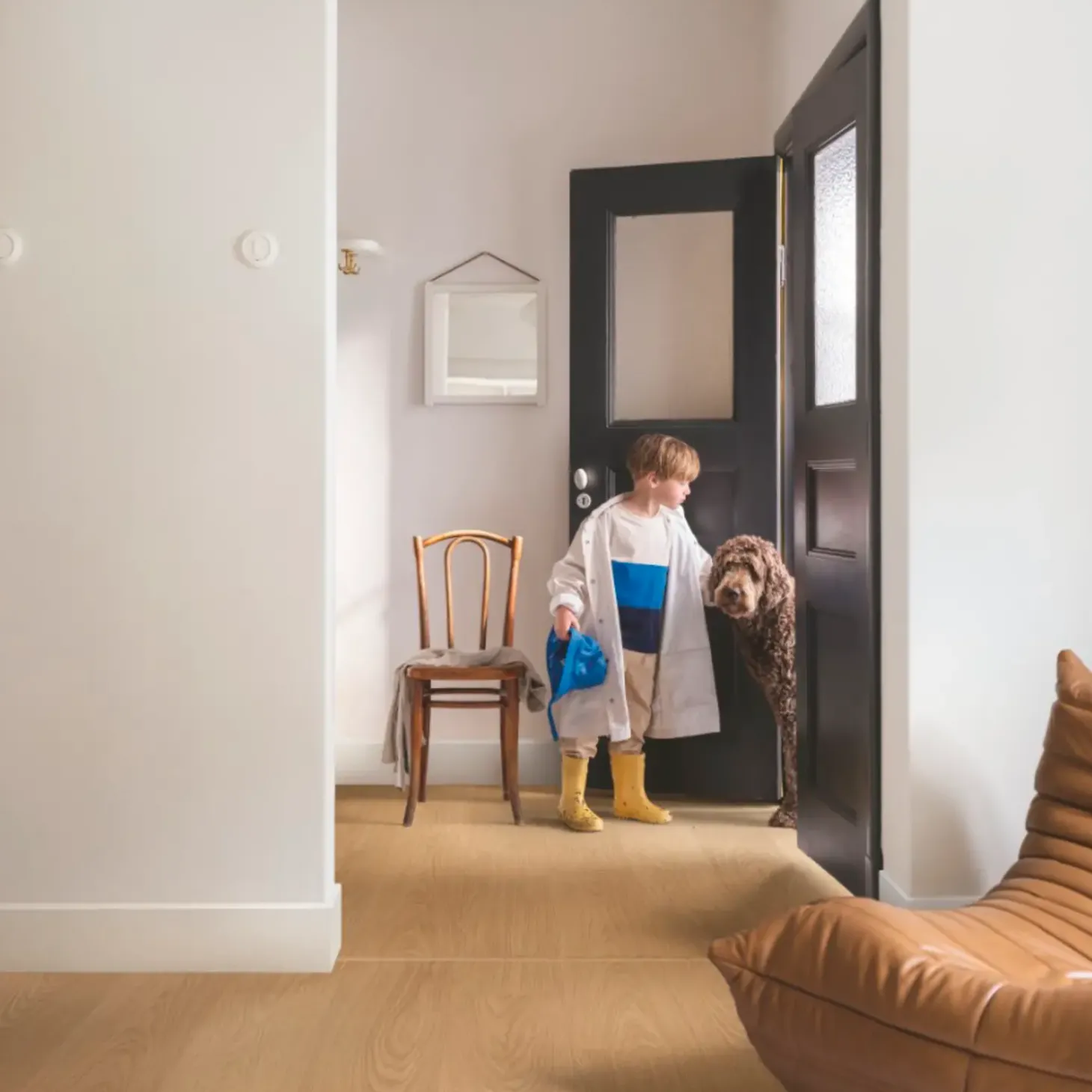 Alle Pergo gulve har AquaSafe, vores egenudviklede teknologi, der skaber en forseglet, 100 % vandtæt overflade hele vejen ned i samlingen. Aquasafe forhindrer vand i at trænge ned i gulvet. Det bliver ganske enkelt på overfladen, og du kan nemt tørre det af.