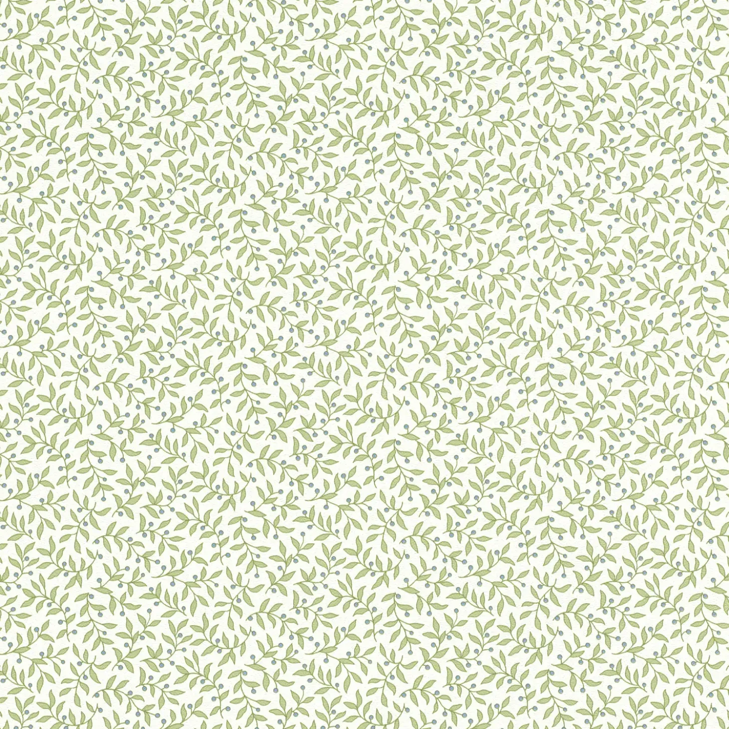 Tapet med store grene og blade der er placeret i et tæt, jævnt og harmonisk mønster.