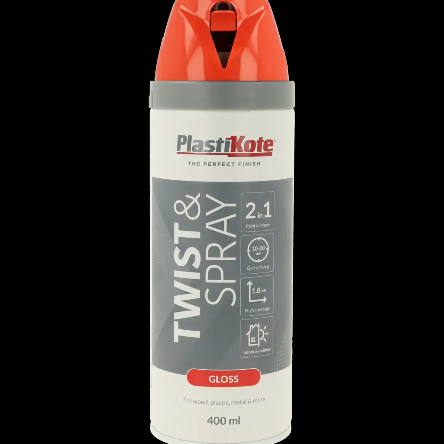 Spraymaling fra Plasti-Kote med unikt patenteret system, der adskiller dem væsenligt fra traditionelle spraymalinger.