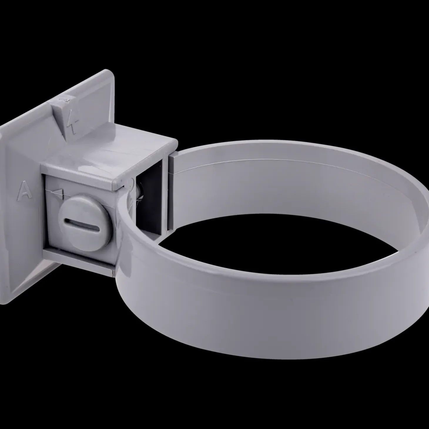 Plastmo plastrørholder anvnedes til at fastholde nedløbsrør.