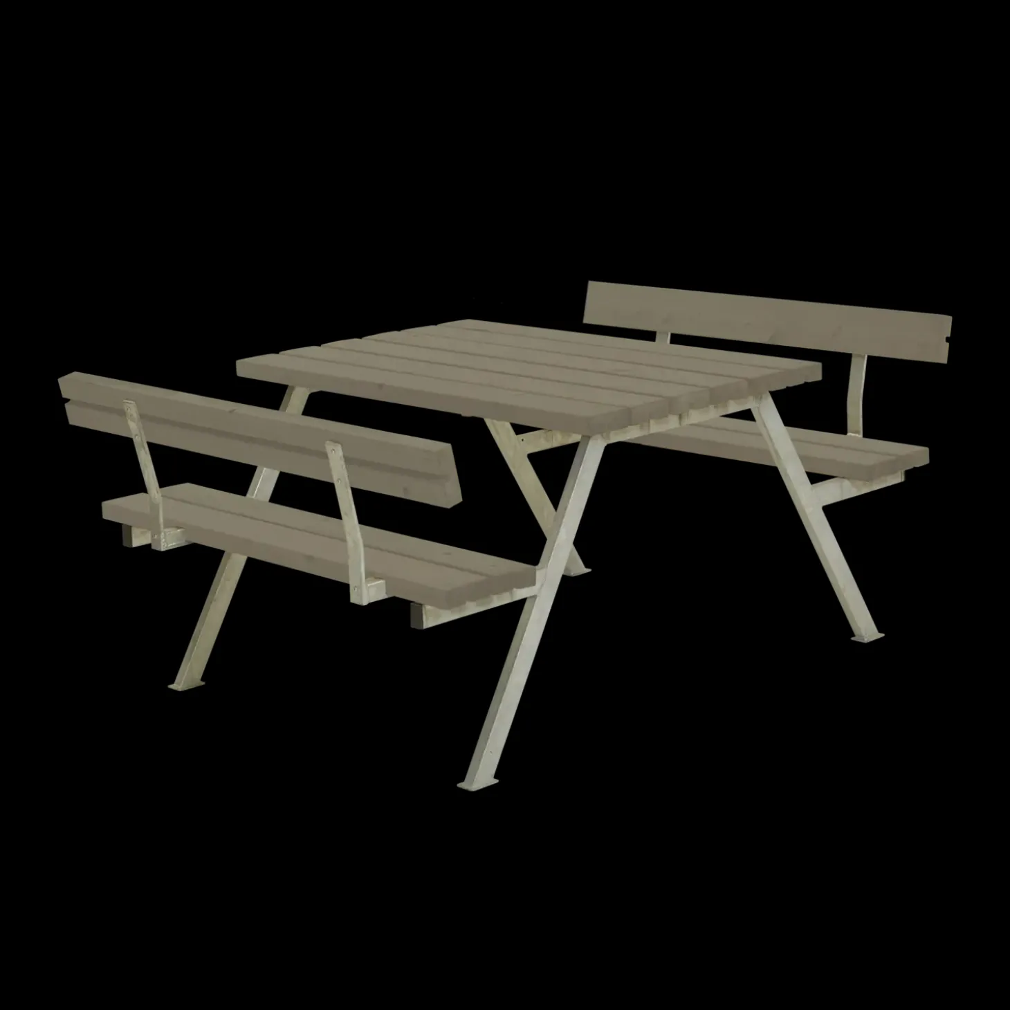 Med dette bord-/bænkesæt fra Plus får du et klassisk holdbart møbel til din have, som har et enkelt udtryk og derfor passer ind i de fleste danske hjem. Benene er desuden resistent overfor rust, da det er produceret i varmgalvaniseret stål. Plus Alpha Bord-bænkesættet fåes i flere længder, farver og varianter med og uden ryglæn, derfor kan du vælge den løsning der passer til dig.