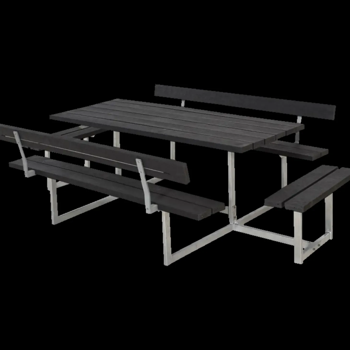 PLUS Basic Bord/Bænkesæt m/2 ryglæn og 2 påbygninger 260 cm RePlast Sort