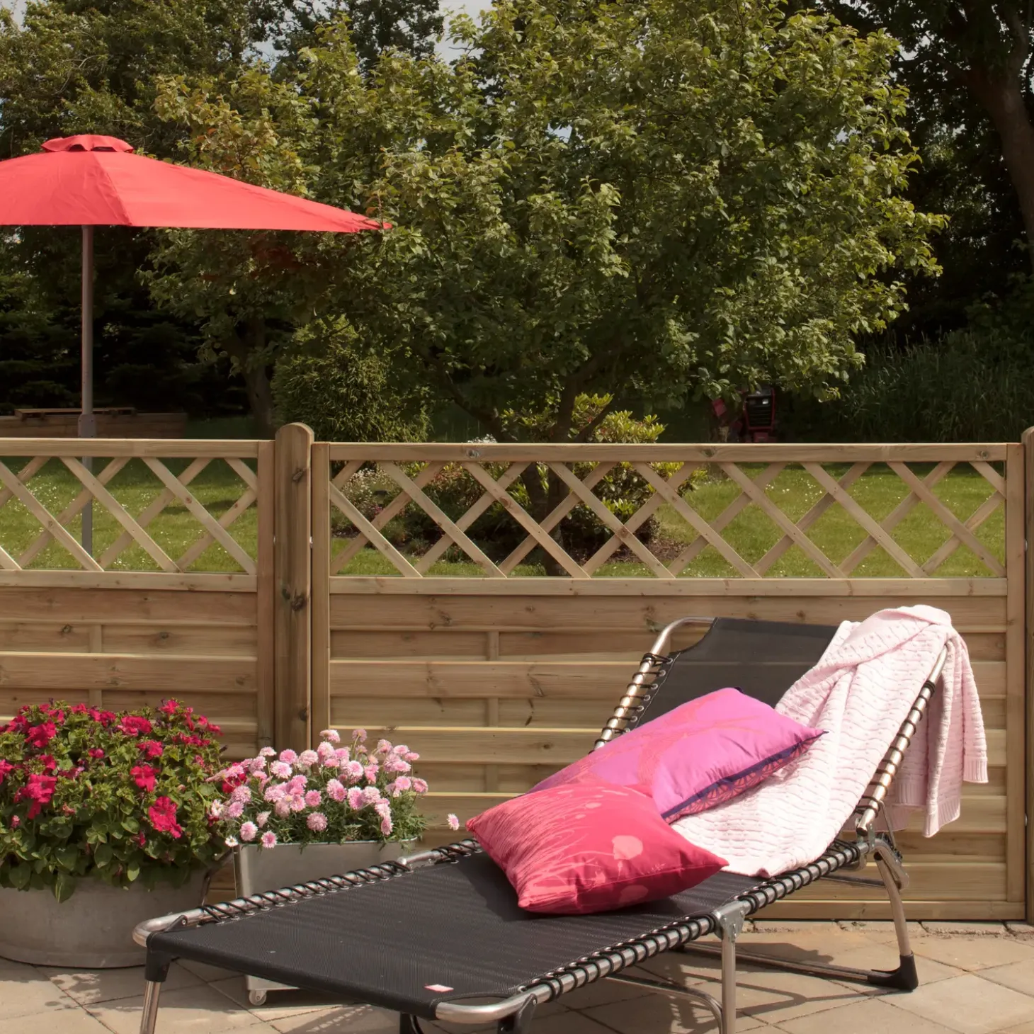 - Vær opmærksom på at, modulet sælges separat. Husk at tilkøbe stolper og skruer til montering af havehegnet.