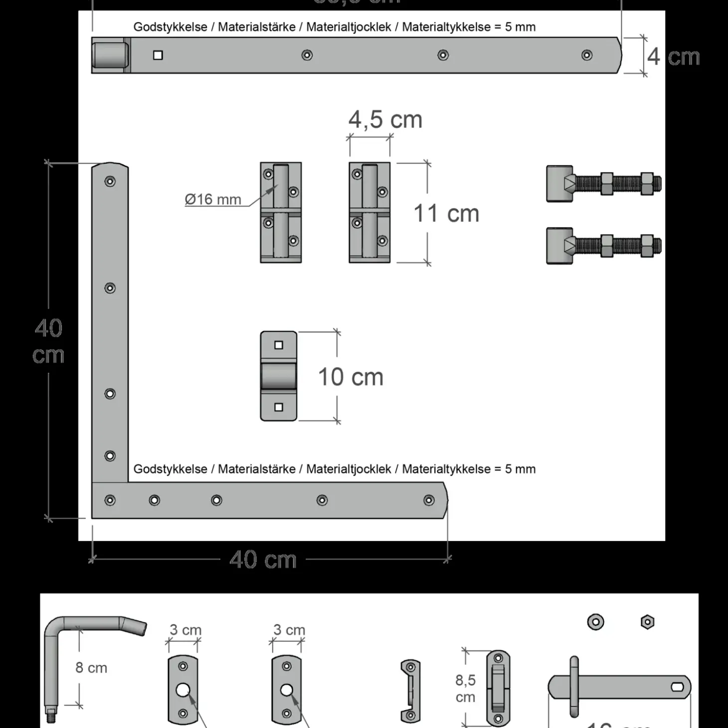 - Vær opmærksom på at, modulet sælges inkl. lågebeslag, bolte og skruer til montering af havelågen.