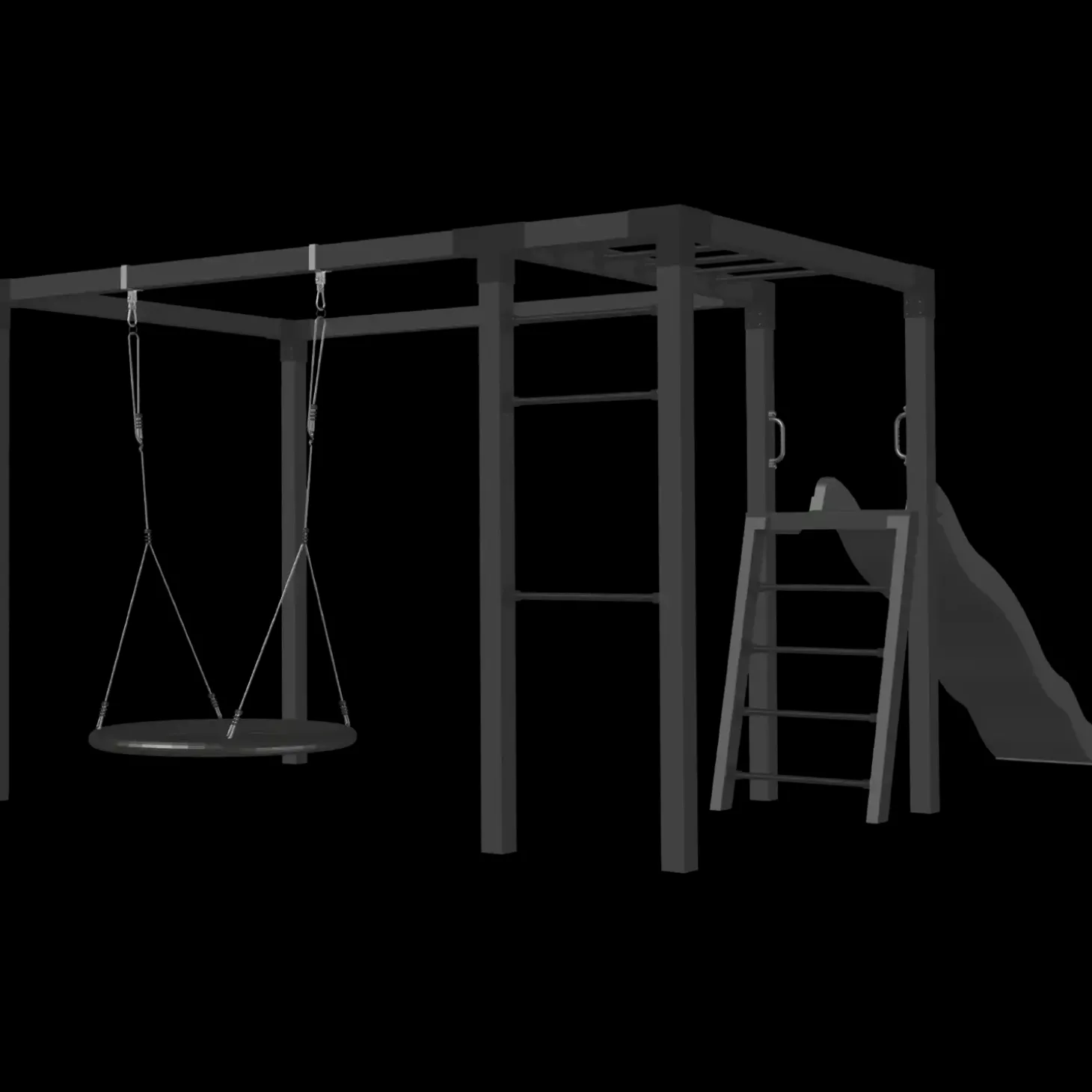 Daylife gyngestativ – model 4 – 179089-15Skab de bedste rammer i haven med et gyngestativ, som inviterer til bevægelse og giver dine børn mulighed for at udfolde sig aktivt.Det moderne gyngestativ med ribbe, armgang, rutsjebane med stige og redegynge indbyder til mange timers leg med sus i maven og vind i håret. Her er rig mulighed for at gynge, rutsje, klatre, gå armgang eller bare hænge og svaje i armene – alt sammen udvikler og styrker barnets balance, motorik og sanser.Ribbe og armgang kan også bruges af større børn og voksne til styrke- og udholdenhedsøvelser.Varenr. består af:Redegynge/gyngeophæng, rutsjebane, stige/håndgreb, fitness stænger, Cubic beslag og stolper til nedgravning. Inkl. skruer.Redegynge:Ø98 cm.Sort – vandafvisende stof med PE mesh.Flettet reb med sorte PP svejsninger.Belastning pr. sæde = 150 kg.Inkl. 2 stk. gyngeophæng.Rutsjebane:Plast – Gråsort.Indvendig bredde = 30 cm.Udvendig bredde = 49 cm.Inkl. stige og håndgreb (2 stk.).Fitness stænger:Galvaniseret og pulverlakeret stålrør 3/4″ (12 stk.).Sort RAL 9005.Længde 63,5 cm.Rør og fittings er uden gevind.Inkl. runde fødder.Fastspændes med umbraco skrue (Umbraconøgle medfølger).Max. belastning pr. stålrør 150 kg.Inkl. runde fødder og skruer.Beslag:Cubic Hjørnebeslag Enkelt 20×20×9 cm (1 stk.).Cubic Hjørnebeslag Dobbelt 20×20×20 cm (4 stk.).Cubic Forlængerbeslag Dobbelt 30,5×20×20 cm (1 stk.).Galvaniseret og pulverlakeret sort.Sort RAL 9005.Stolper:Omlimede træstolper 9×9 cm til nedgravning.Trykimprægneret (NTR mærket klasse A) og grundmalet sort.Nærmeste RAL 9005 – vandbaseret.Trykimprægneret NTR mærket klasse A – betyder, at de er effektivt beskyttet mod råd og tåler nedgravning. Stolperne er sammenlimet (omlimet) af to stykker træ for at mindske revnedannelser og vridning samt sikre styrke og formstabilitet.Leveres som “Saml selv”.PLUS legereskaber er CE mærket – godkendt til privat brug.