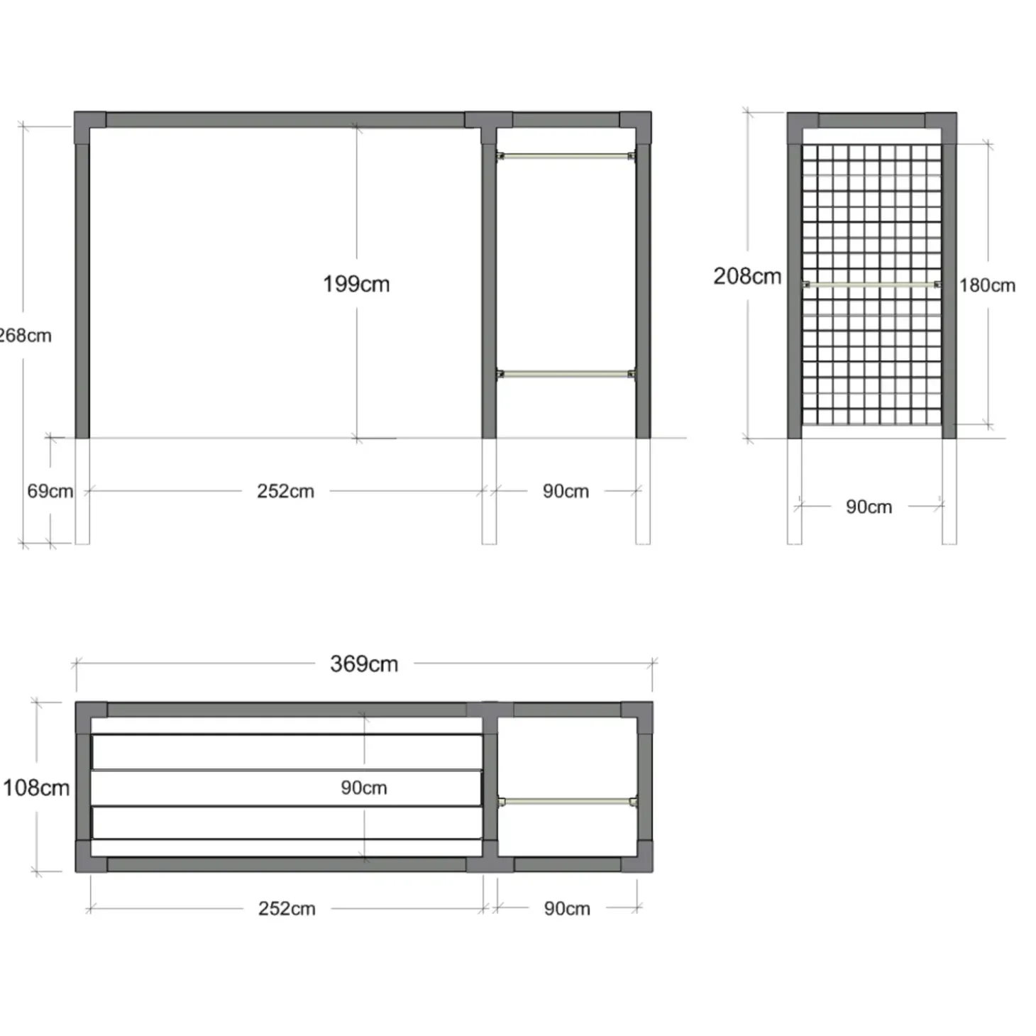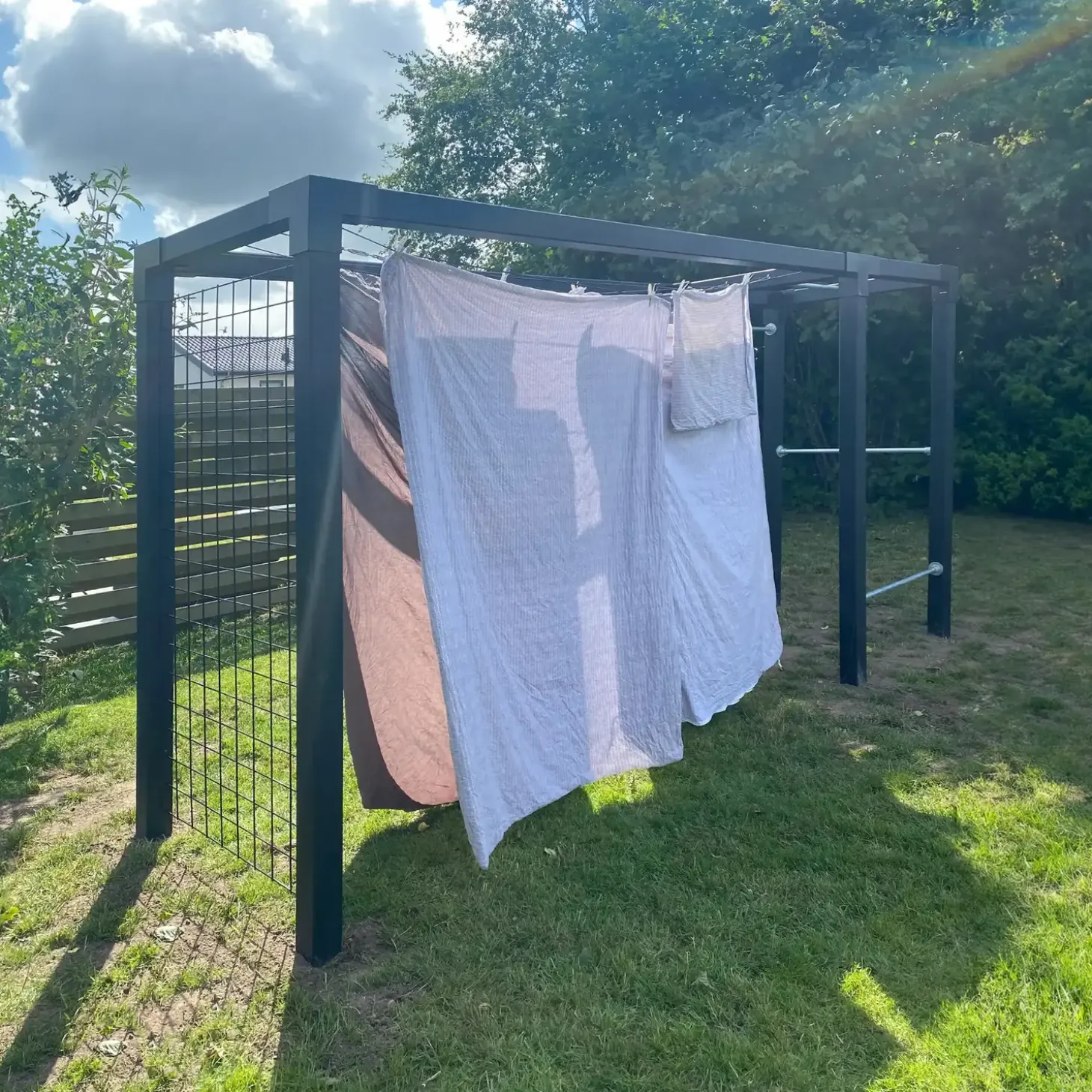 - Kombinerer tørrestativ, træningsstativ og espaliér i et
