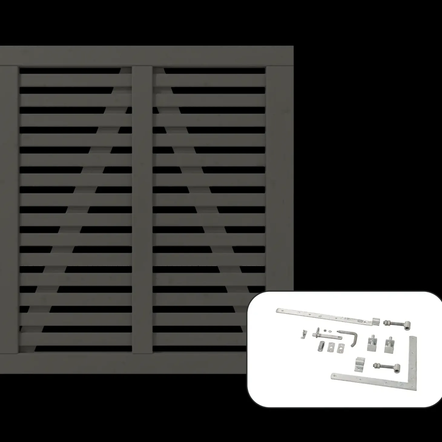 Lad harmonien brede sig i dit uderum med denne smukke havelåge.De smalle lister virker kamuflerende, så indkig begrænses uden at lukke helt. Samtidigt skaber samspillet mellem lodrette og vandrette lister en flot persienneeffekt, der leder tankerne hen på de betagende, japanske foldevægge.