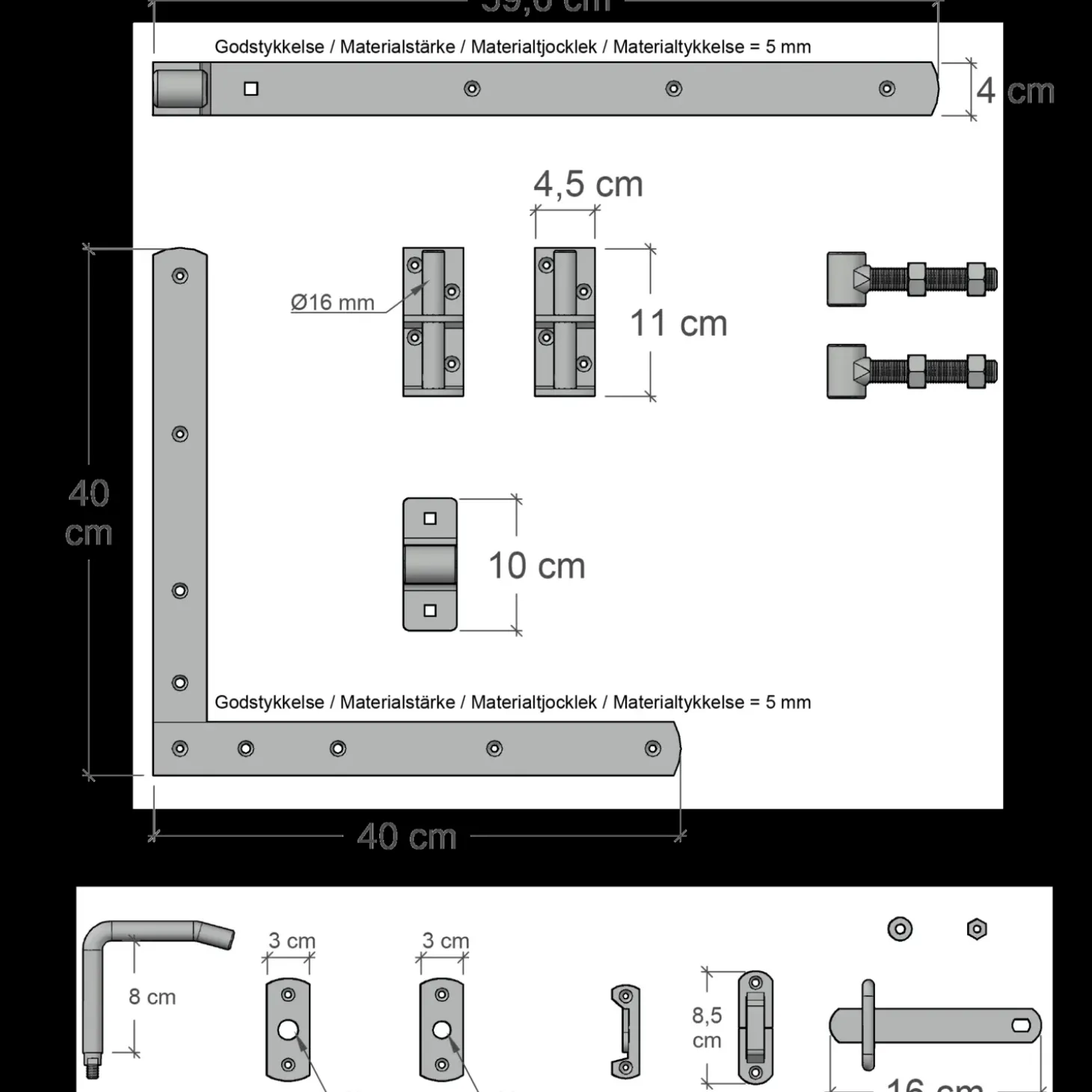 - Vær opmærksom på at, modulet sælges inkl. lågebeslag, bolte og skruer til montering af havelågen.