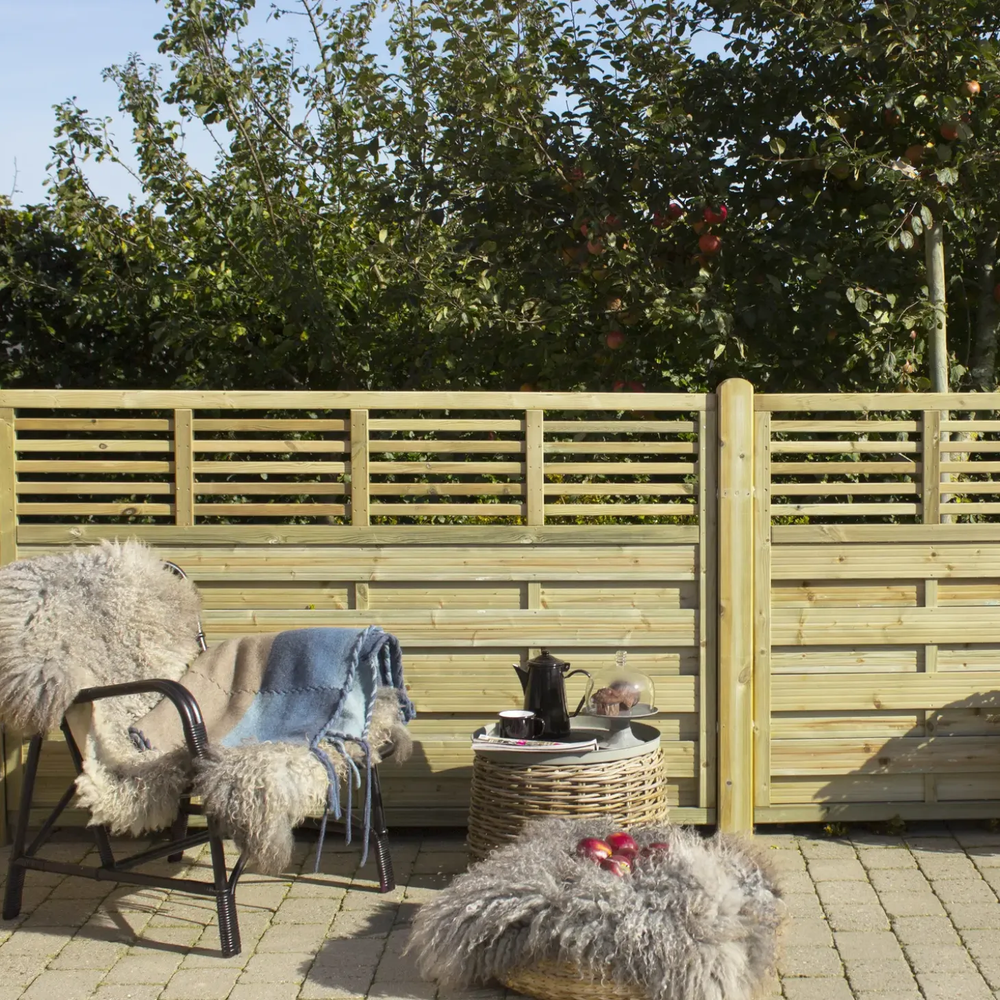 - Ønsker du at sikrer så lang levetid som muligt, anbefaler vi du efterbehandler dit havehegn året efter montering, da det er vigtigt at træet er god tørt inden anvendelse af maling eller træbeskyttelse.