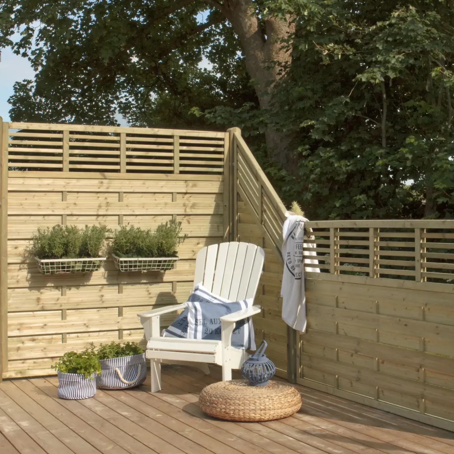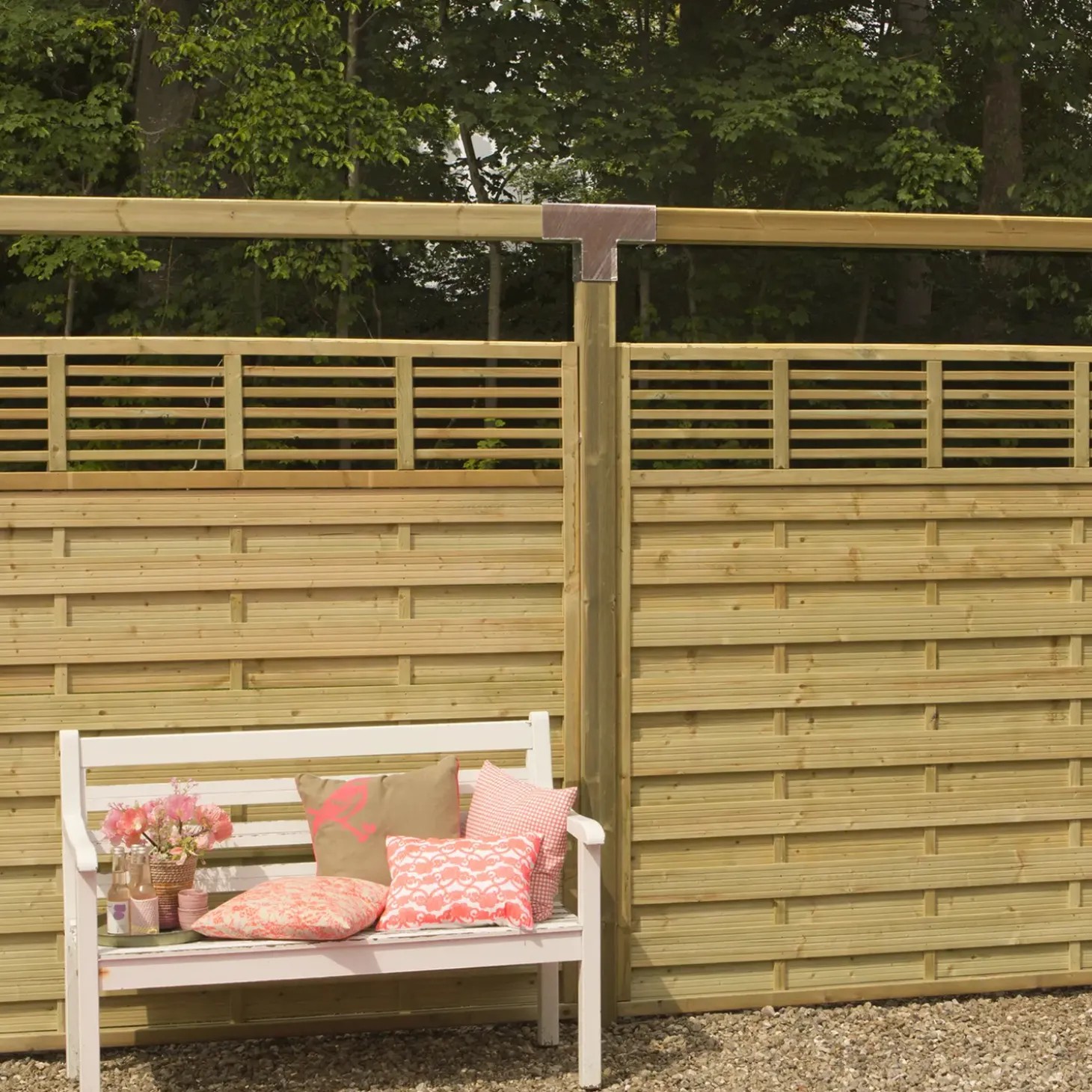 Plus Newline havehegn er et klassisk læhegn med vandrette lameller og espalier i toppen, som skaber et roligt og åbent udtryk, samt afskærmer de ønsker område i haven. Newline hegn med espalier i toppen, giver et smukt lysindfald samt giver dig mulighed for at nyde udsigten udover haven. Udnytte hegnets mange funktioner og skabe flere personlige hyggekroge.
