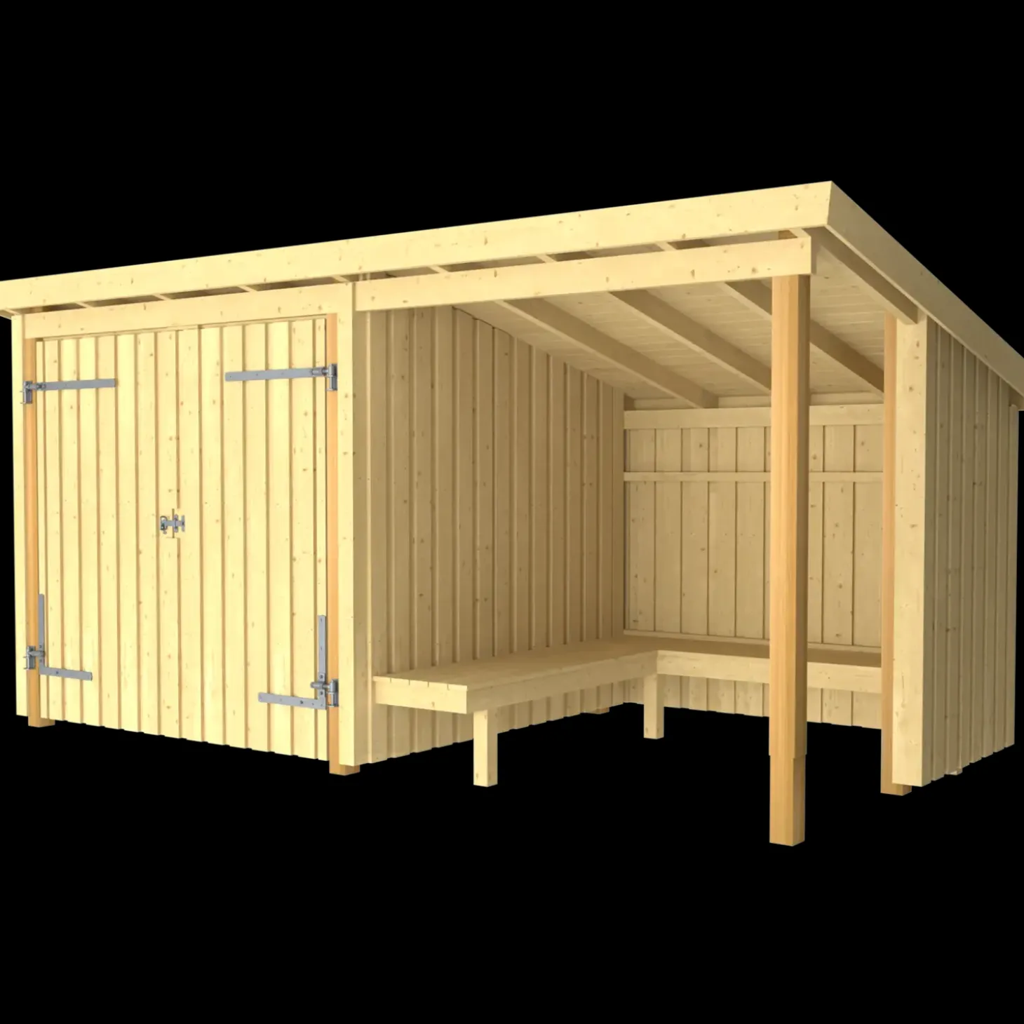 Nordic Bålhytte/Havehus 2-moduler inkl. beslag/skruer og bænk samt dobbeltdør. Ekskl. tagpap/alulister og H-stolpefødder.