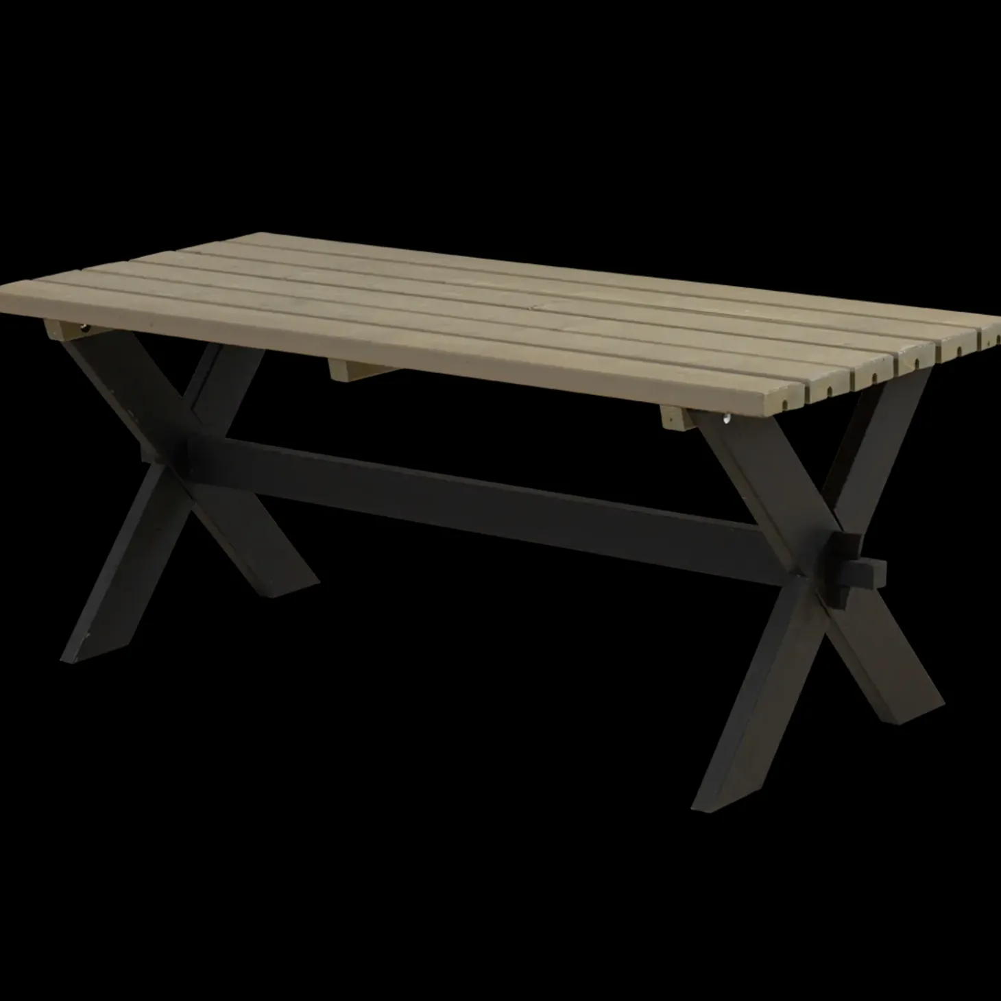 Ryk det moderne plankebord ud og nyd de massive nåletræsplanker på 42×116 mm. Bordet står solidt på de 42×116 massive træ fødder.