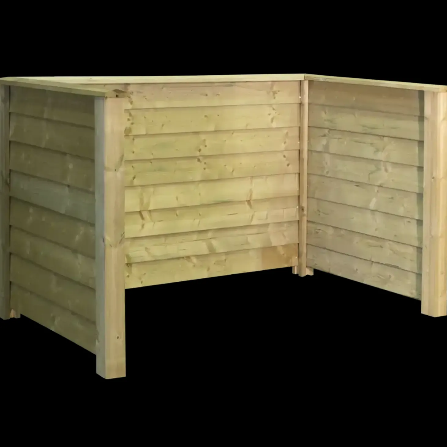 Renovationsskjul Klink Profil – m/stolper til nedgravning – 26610-1 – PEFCRenovationsskjulet vil ikke kun skjule dit skrald med stil, men også pynte på din indkørsel. Der findes ikke noget kedeligere, end at synet af de grå eller grønne kedelige skraldespande. Løsningen er et skraldespandsskjul, som gemmer dine skraldespande lidt væk, så det ikke er det første gæsterne møder, når de kører ind ad indkørslen.Klink Profil renovationsskjul er bygget op af hegnselementer fra Klink Profil hegnsserien, hvilket giver dig mulighed for at bygge videre på renovationsskjulet, så det passer til netop dit behov og ønsker.Varenr. består af:Renovationsskjul med plads til 2 spande (mål 58×107,5 cm / 240 ltr.). Inkl. skruer.Sider:· Trykimprægneret profilbrædder 27/7 mm × 140 mm· Savskåret og høvlet· Inkl. skruer og topbræt til afslutning· Monteres direkte i stolpenStolper:· Krydsskårne profilstolper m/spor 9×9 cm – til nedgravning· TrykimprægneretNTR mærket klasse A, hvilket betyder, at de er effektivt beskyttet mod råd og tåler nedgravningLeveres som “Saml selv”.Byg selv efter ønsker og behov Vi gør opmærksom på, at der på de trykimprægnerede brædder kan forekomme visuelle “strømærker” på den ene side side af brættet. Denne nuanceforskel vil med tiden forsvinde.