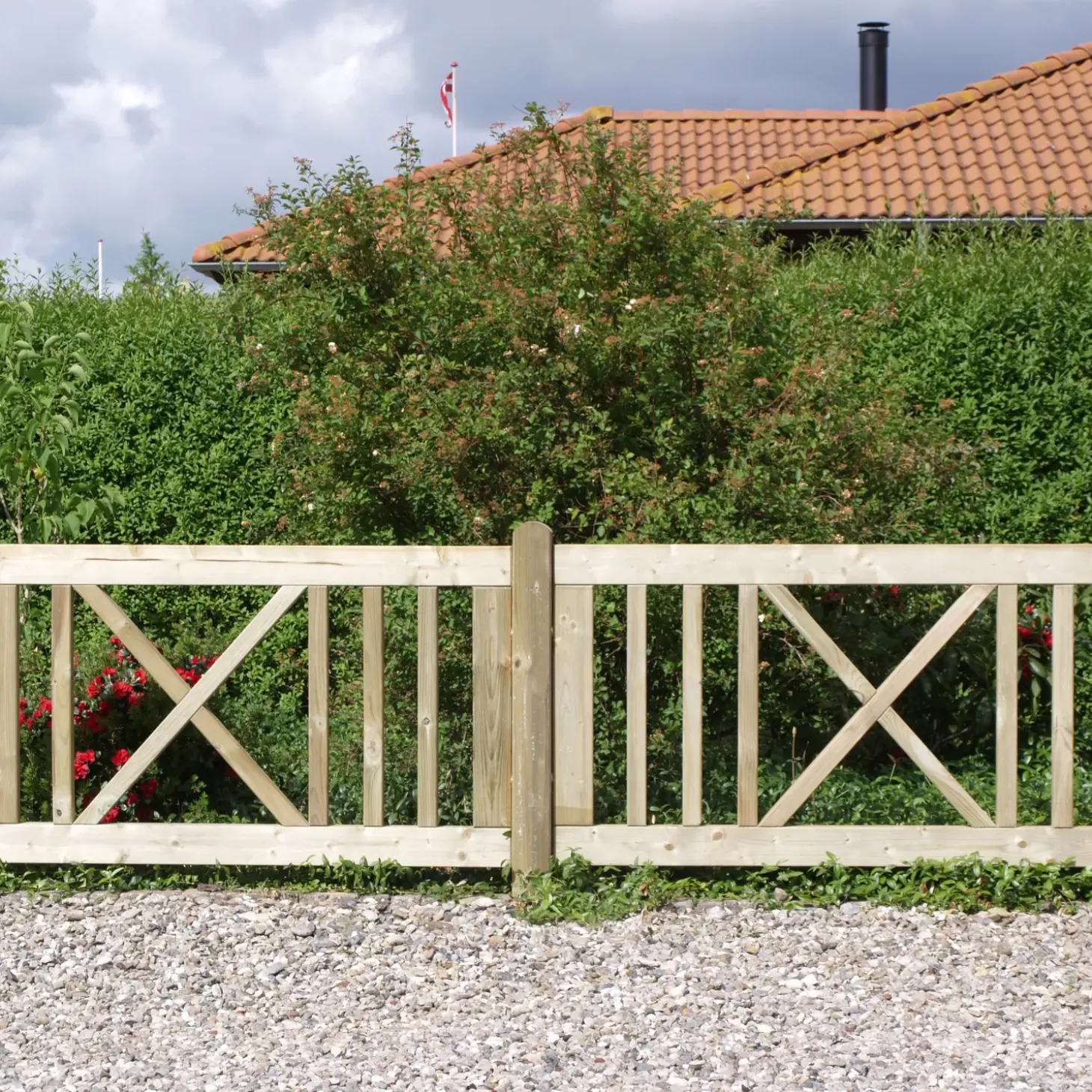 Rummelig, enkelt og åbent havehegn med et x-formet design, der er ideelt til anvendes i forhaven. Hegnets åbenhed giver et frit og svævende udtryk, der fungerer som en smuk udsmykning og egner sig godt i villakvarteret.