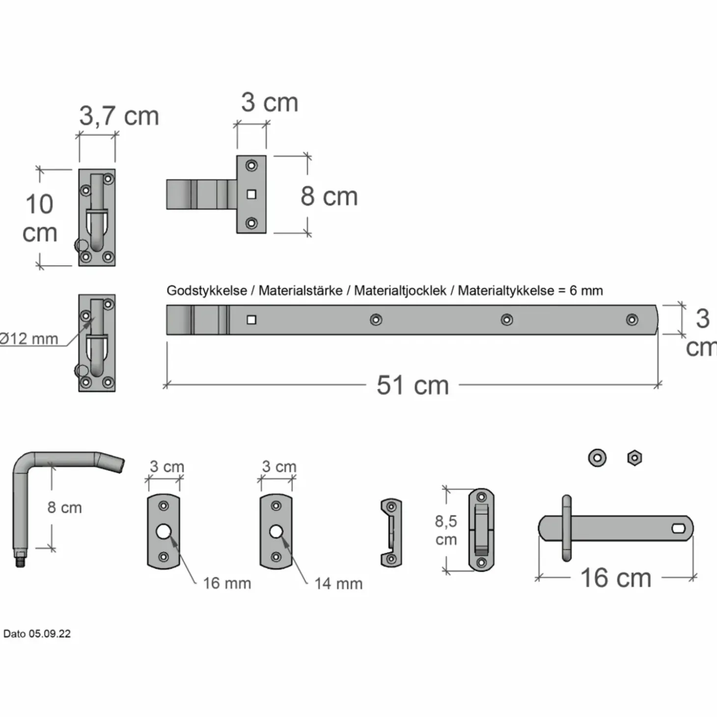 rEnkeltlåge og lågebeslag inkl. bolte/skruer (varenr. 2403-1).