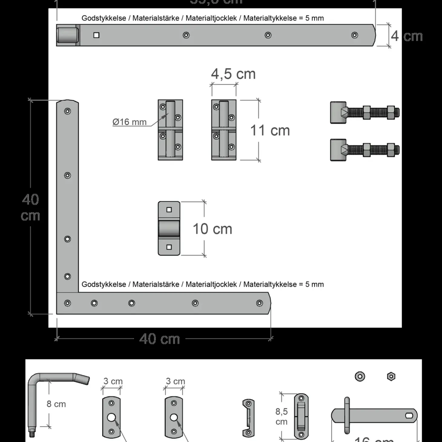 rEnkeltlåge og lågebeslag inkl. bolte/skruer (varenr. 2404-1).