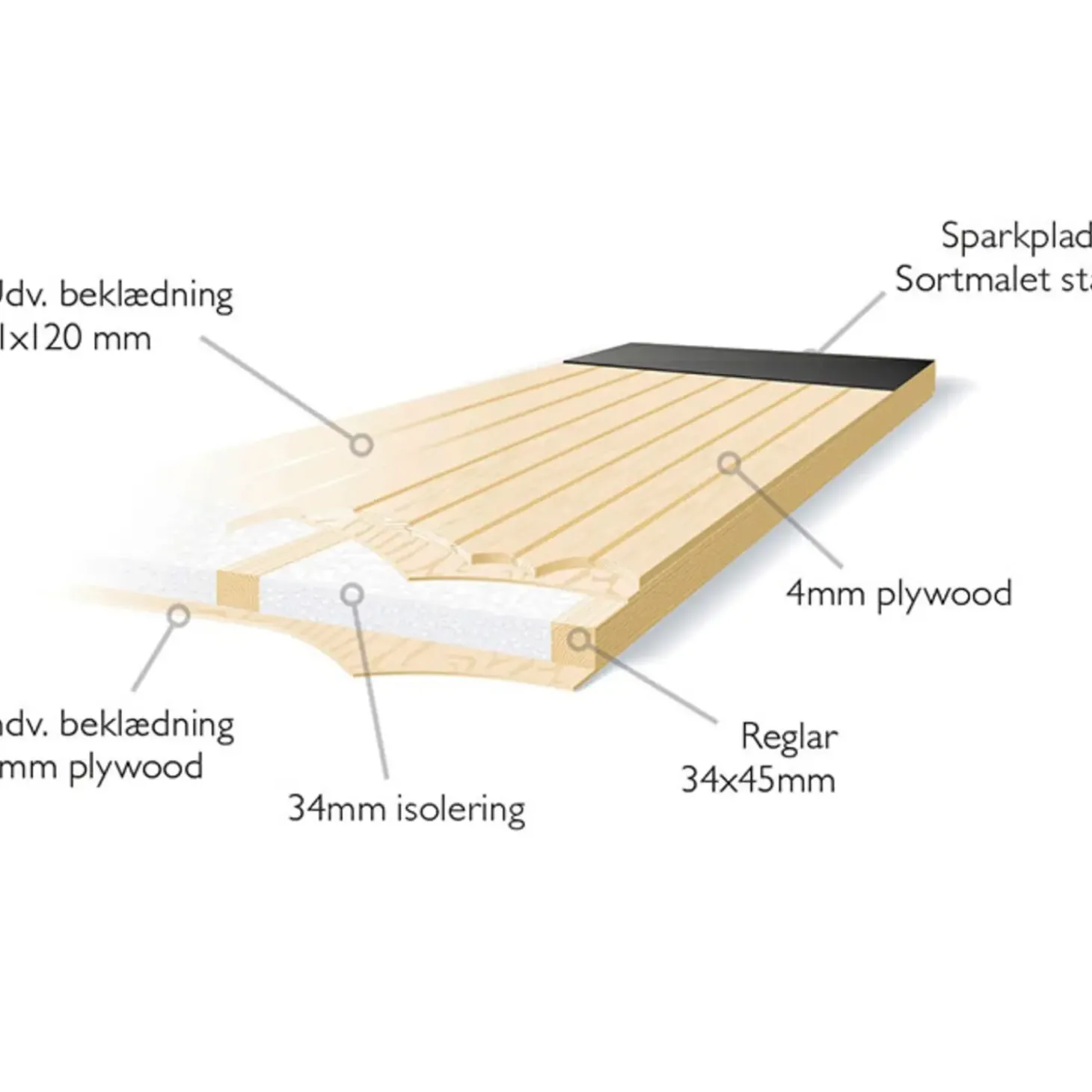 Døren kan blandt andet anvendes i uopvarmede rum, f.eks. anneks/redskabsrum med begrænsede temperaturforskel mellem inde og ude (Max 10º C). Døren har en bredde på 78,6 cm. hvilket er en almindeig størrelse dør, der kan passe ind de fleste steder. Døren er isoleret med 33 mm og har nederst på døren en 15 cm. sortmalet stål sparkplade.