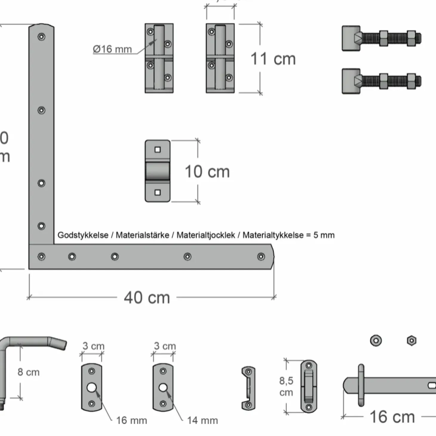 - Vær opmærksom på at, modulet sælges separat. Husk at tilkøbe stolper og skruer til montering af havelågen.