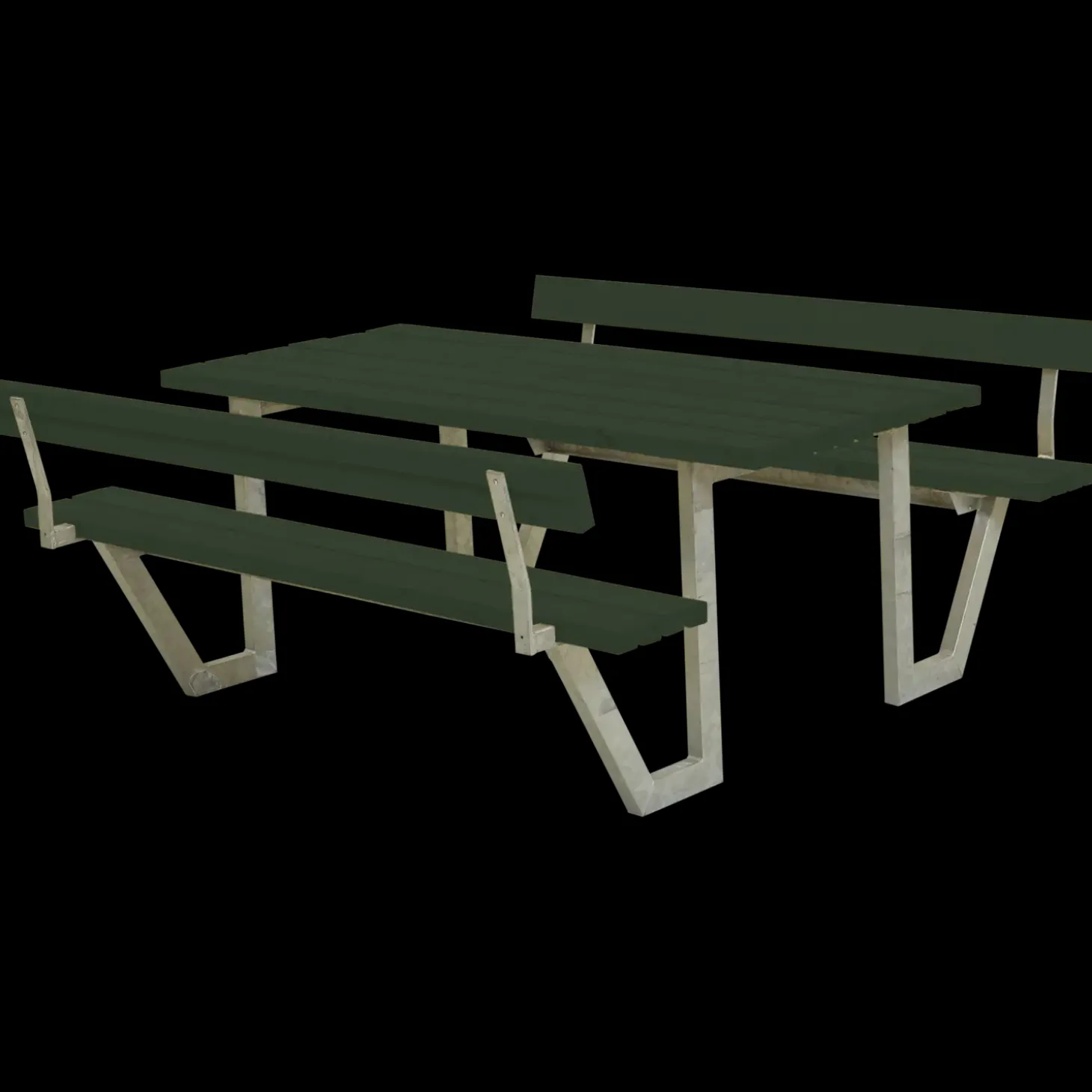 Egenskaber og fordele for Plus Wega bord-bænkesættet med 2 ryglæn