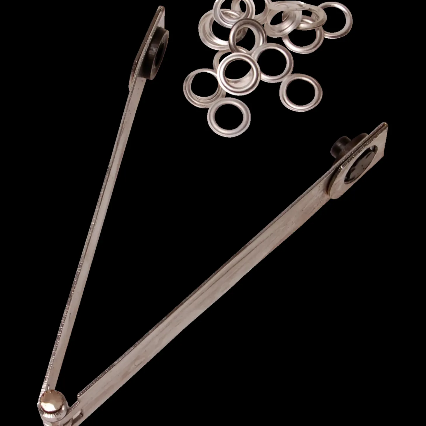 Presenningsøjer i stål inklusiv 1 stk. tang til montering af øjer. Måler Ø: 20mm og hullet måler Ø:10mm.