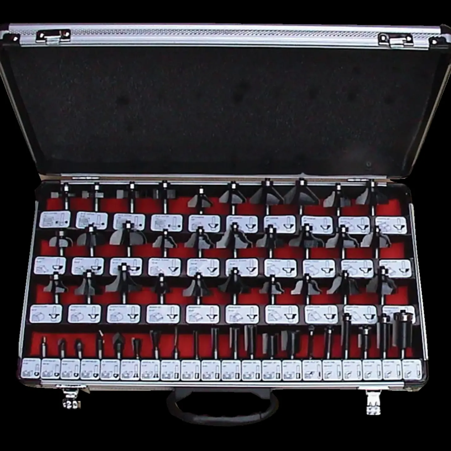 Overfræsesæt med 50 stk. overfræsebor med de mest gængse profiler med og uden kugleleje. Et meget alsidigt sæt som kan bruges til mange opgaver.