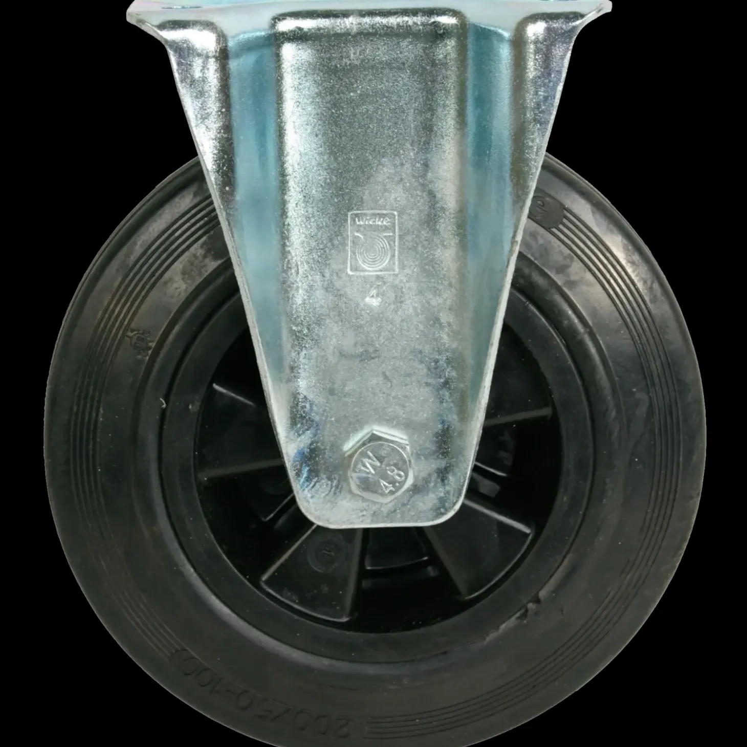 Fast gaffel m. monteret hjul, massiv 200 x 50. Plastfælg m. glideleje.