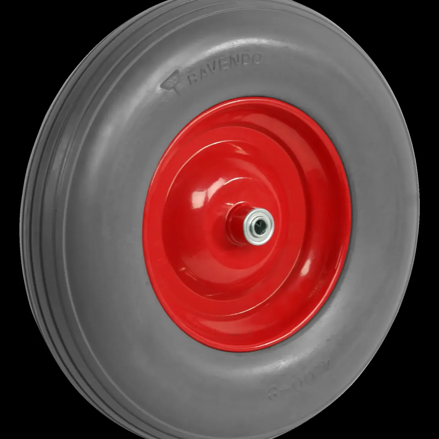 PUR hjul 4.00 x 8. Nav: 12 x 100 mm. Stålfælg med kuglelejer. Passer til de fleste BU, BC, BD trillebøre.