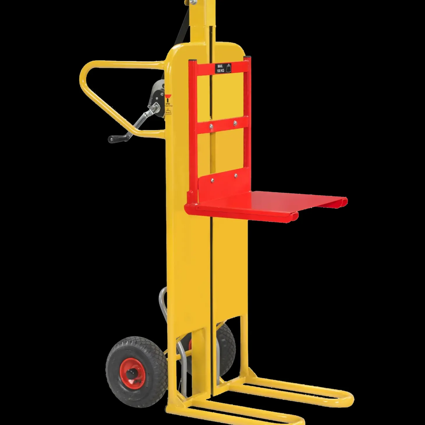 Sækkevogn der er udstyret med hæve/sænkesystem og kan løfte op til 100 kg til maksimalt 1 meters højde. Ergonomiske håndtag og tiplet.