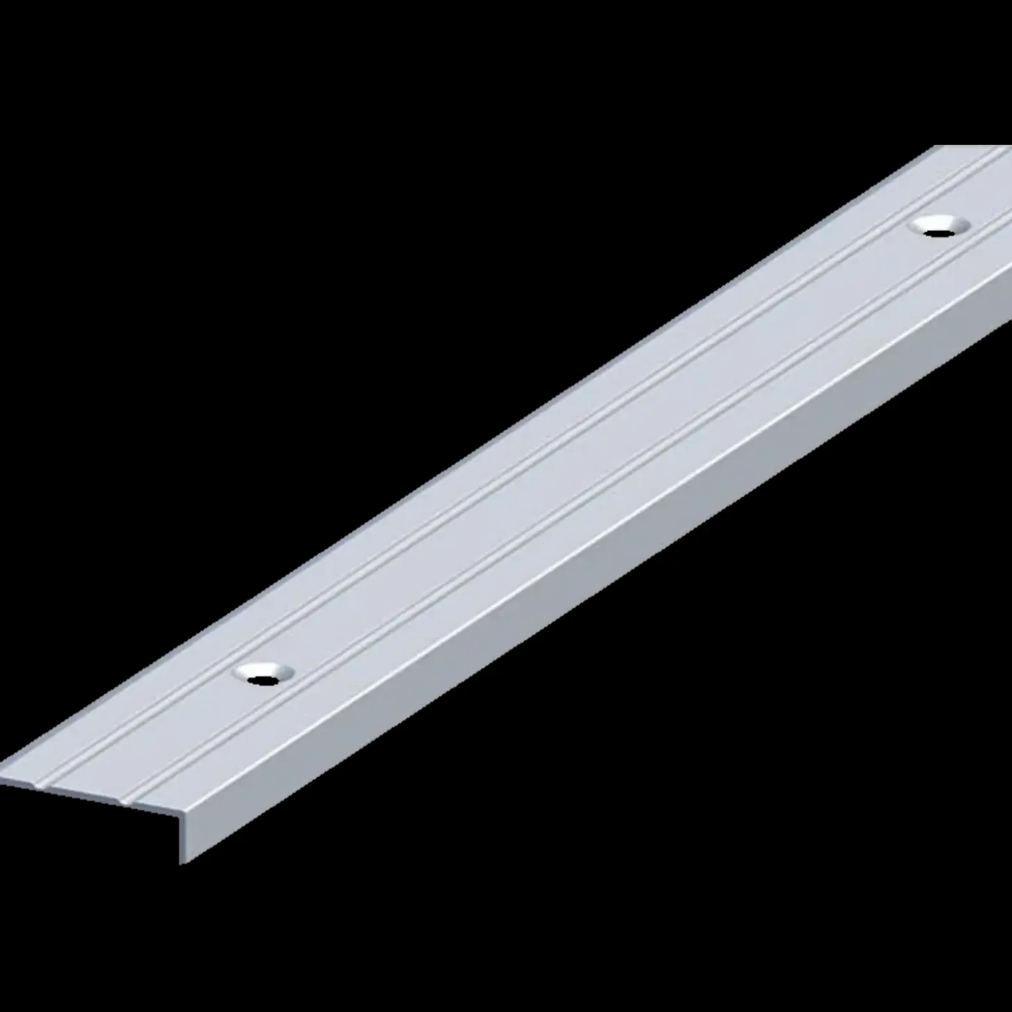 Afslutningsprofil i eloxeret aluminium fra Roliba, anvendes til afslutning af f.eks. fliser, tæpper, trægulv og andre ligende elementer, så der bliver en pæn kant.