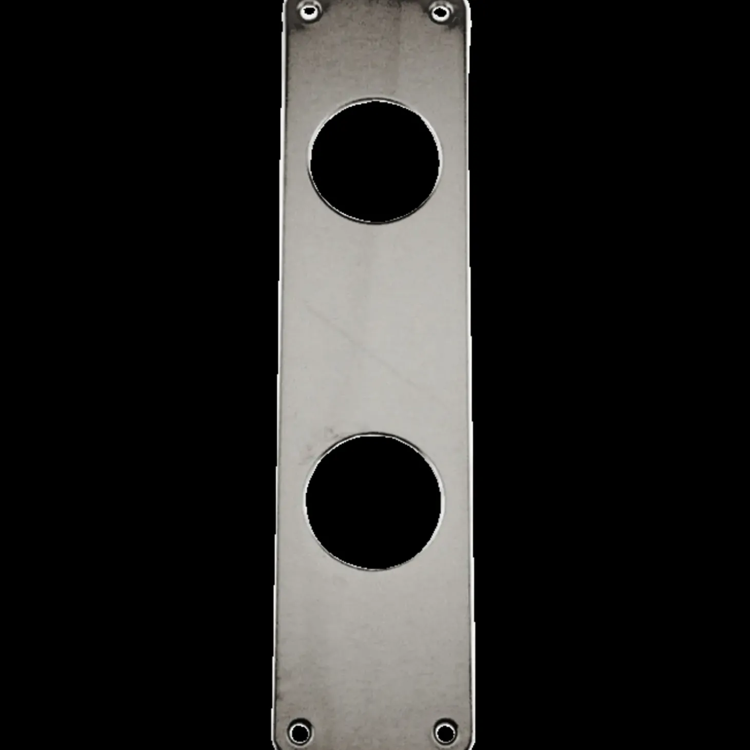 Dækskilt med hul til cylinder og dørgreb med roset.