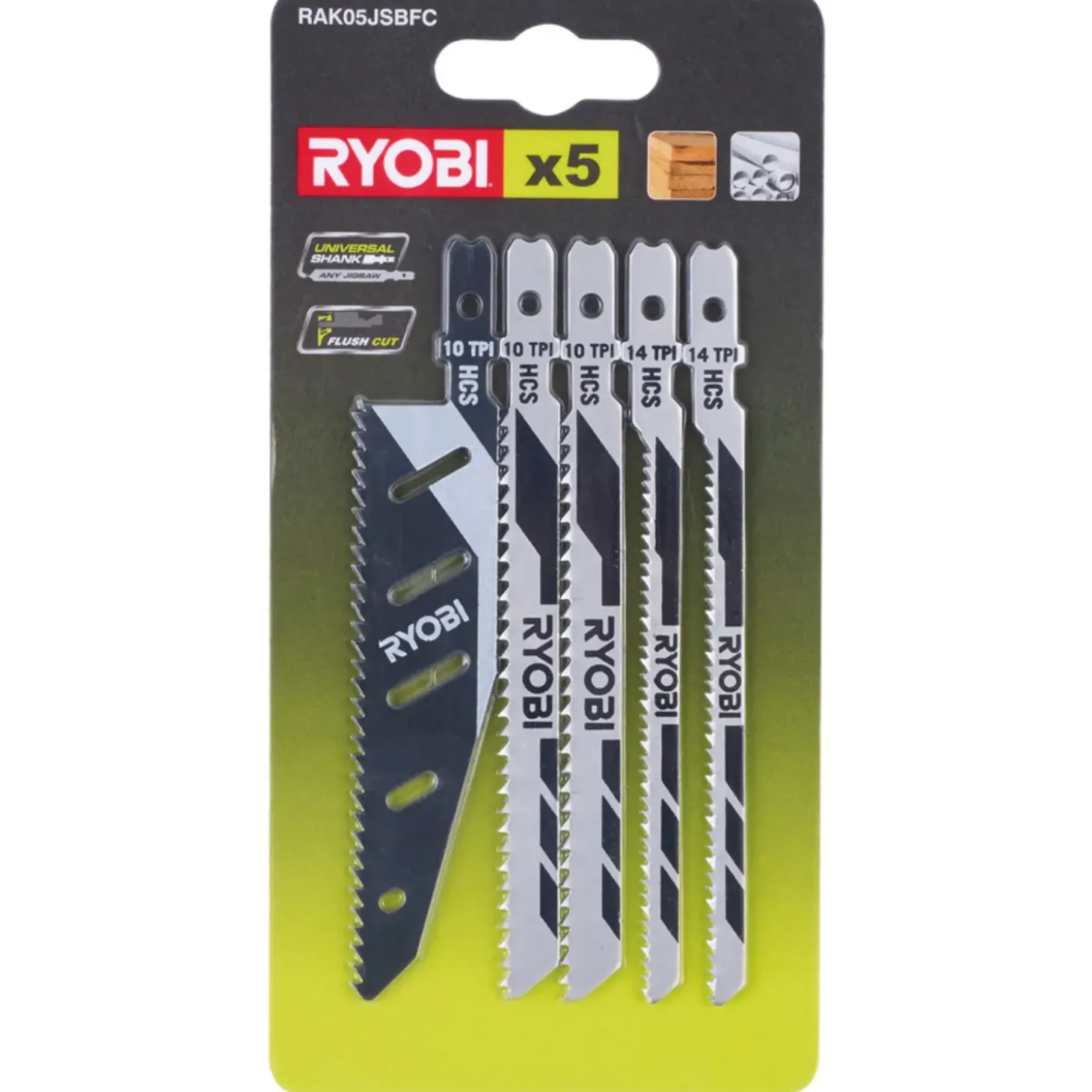 Ryobi stiksavklinge sæt (til træ-og plastik). Segmentsavklinge kan anvendes til skæringer mod en overflade uden at beskadige den.