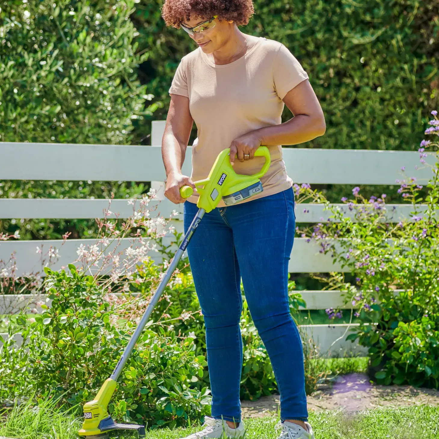 Klip dit græs inde ved kanter og rundt om træer med denne græstrimmer fra Ryobi. Du får her en klippebredde på 23 cm og en tråddiameter på 1,6 mm, med auto-feed.