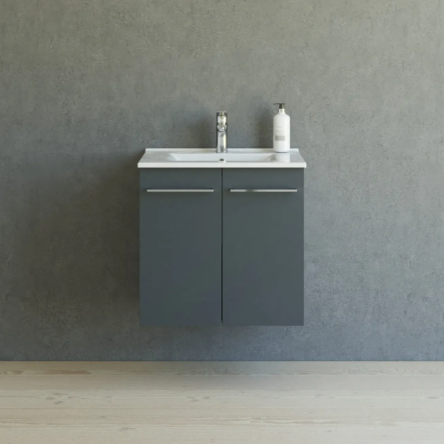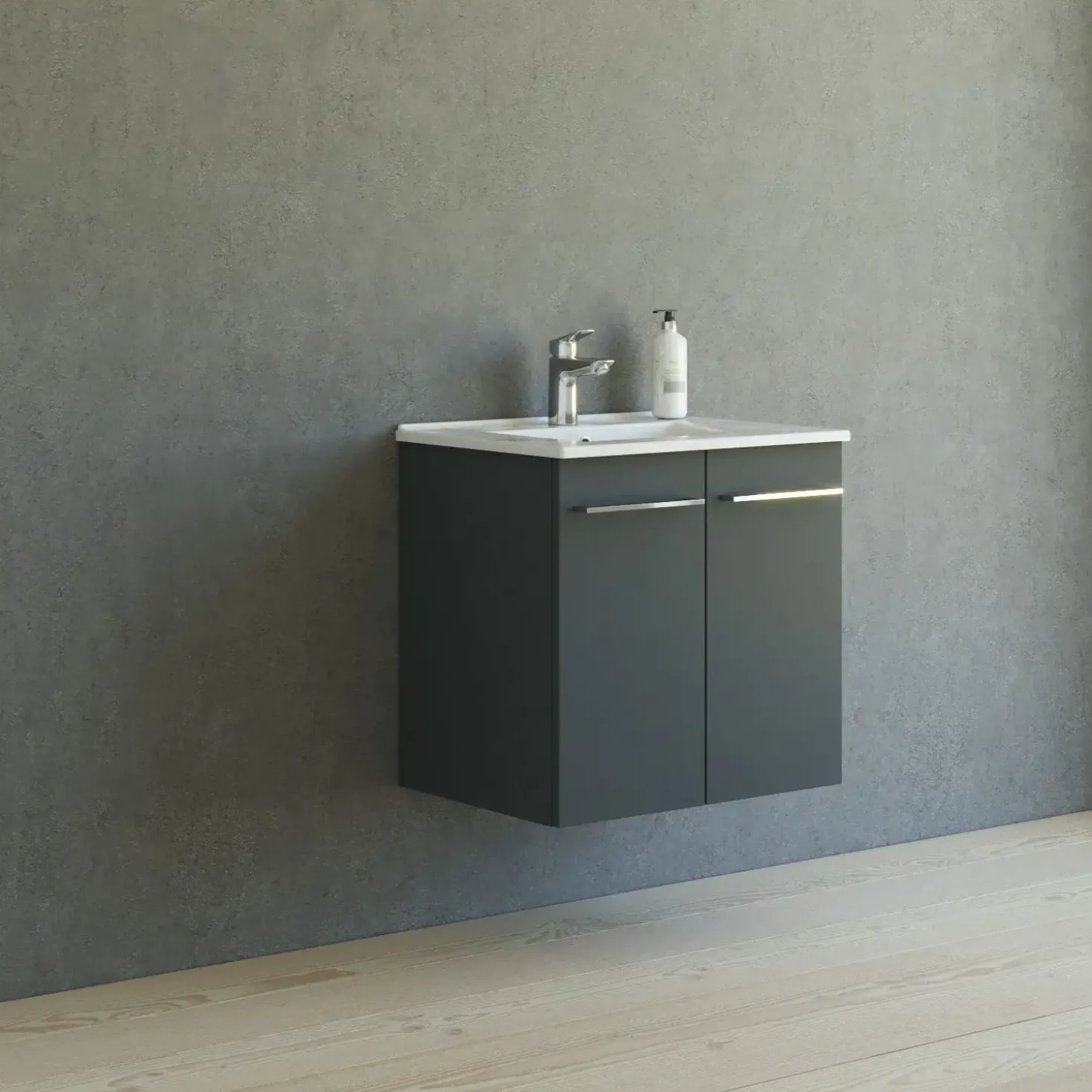 Giv dit badeværelse et subtilt touch af elegance med dette Scanbad Multo badeværelsessæt i grå mat. Denne neutrale farve tilføjer dybde og stil til rummet uden at overvælde. Med et 60 cm vaskeskab med to låger og en elegant Amber vask i sanitetsporcelæn får du både stil og funktionalitet. Bag lågerne finder du god opbevaringsplads, og den lette rengøring af vasken sikrer, at dit badeværelse altid er rent og indbydende.
