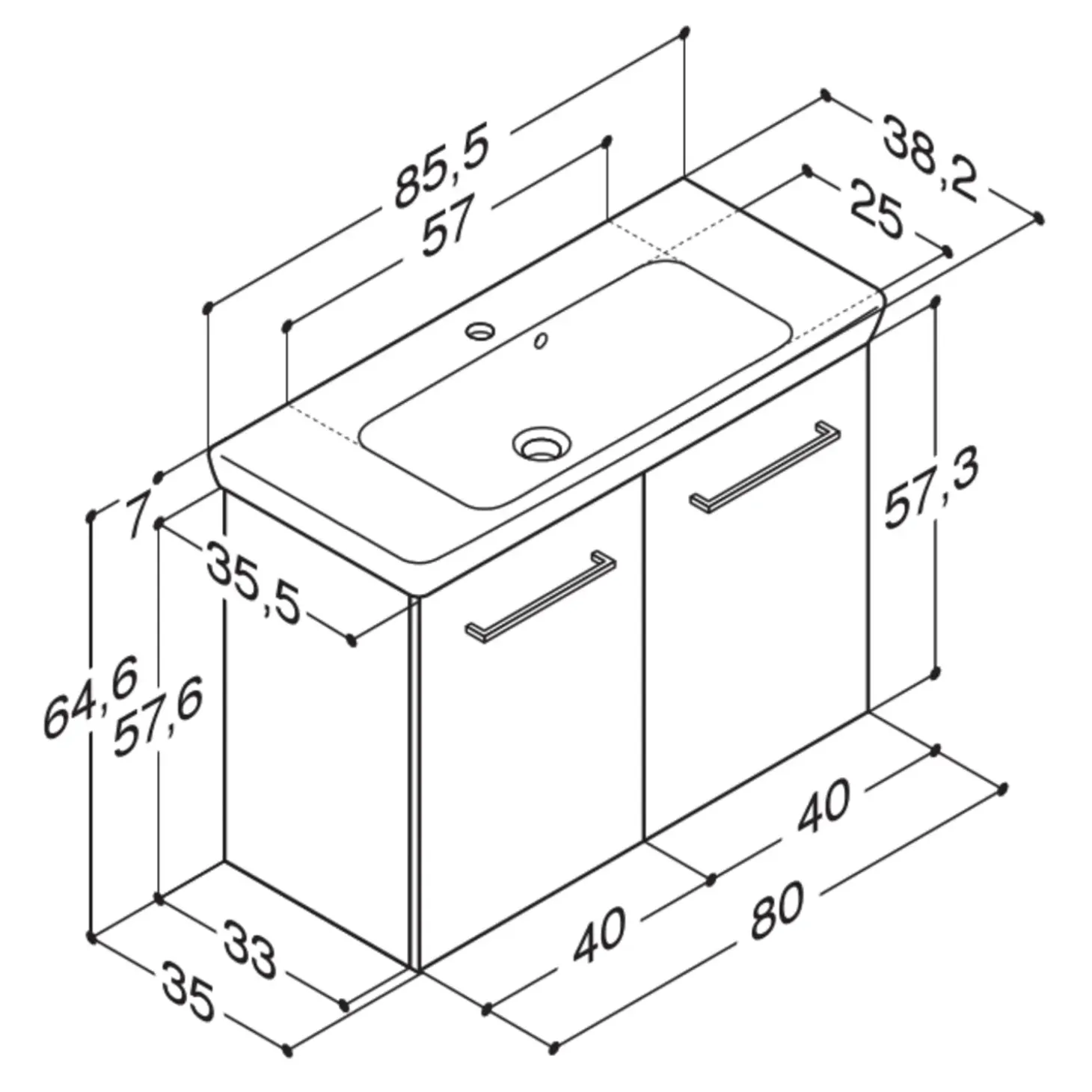 Scanbad Multo vaskeskab m. låger inkl. Lotto vask 85 cm mat hvid