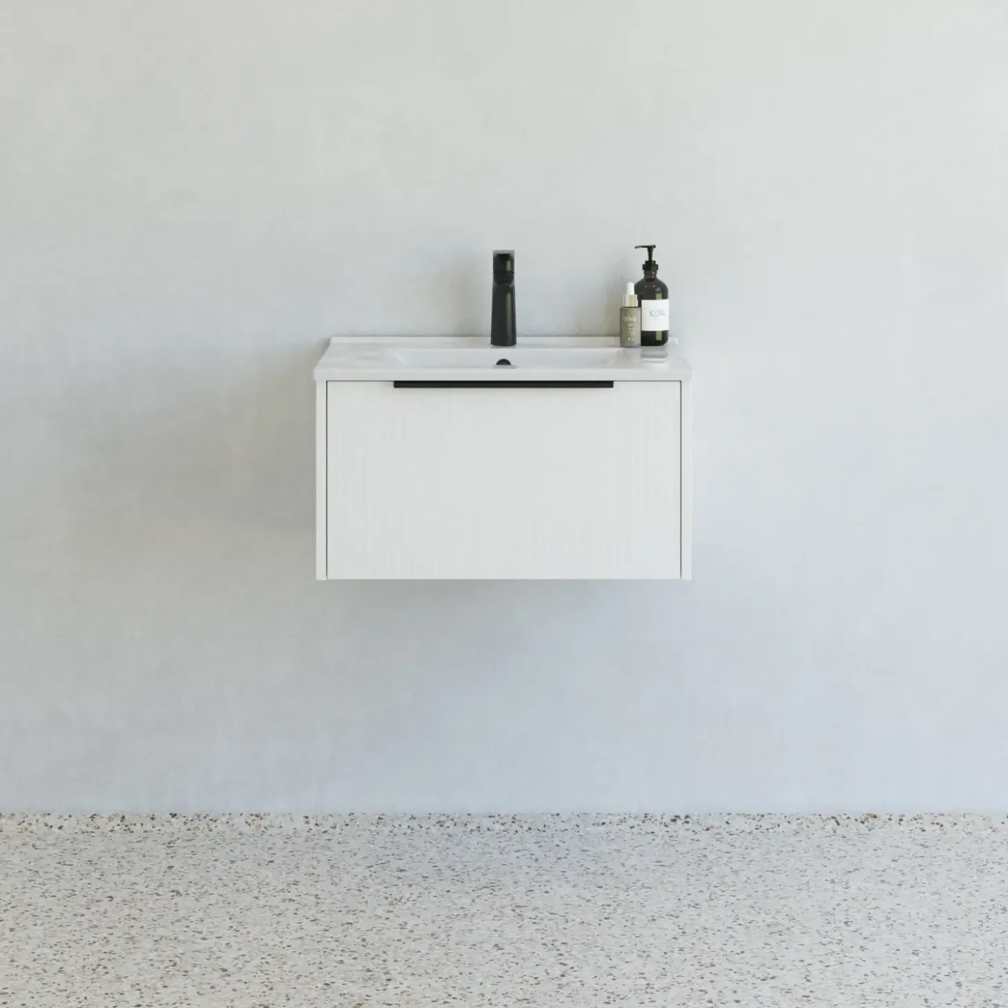 Få badeværelset til at skille sig ud med det flotte vaskeskab og vask i Scanbad NOW møbelpakken. Den unikke front med flotte lodrette striber giver et tidløst og stilfuldt udtryk. Vaskeskabet med én skuffe og en matchende vask. Oplev den perfekte balance mellem design og funktionalitet med Scanbad NOW møbelpakken.