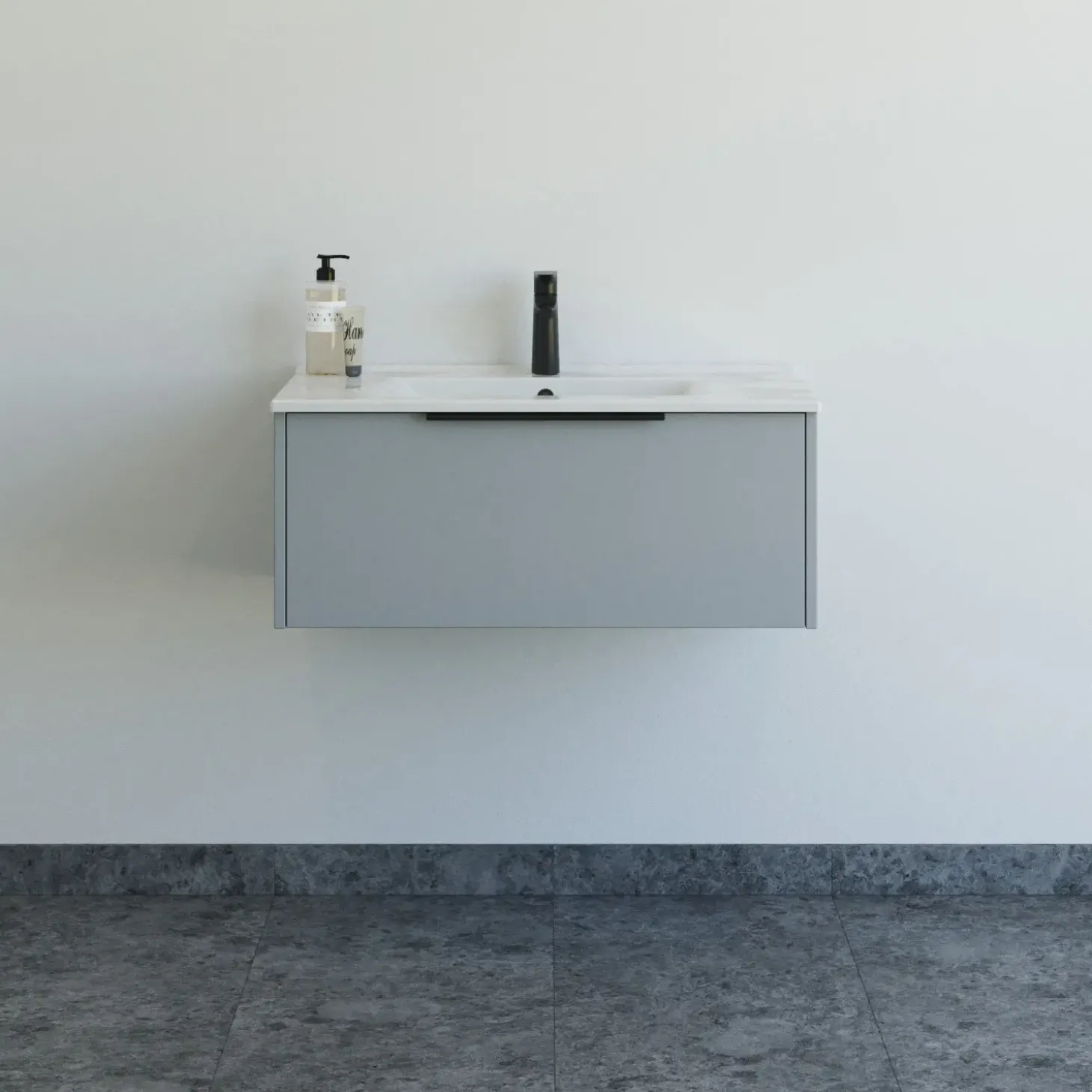 Opgrader dit badeværelse med Scanbad NOW møbelpakken – en perfekt kombination af funktionalitet og stil. Det smukke vaskeskab med én skuffe og en elegant vask er designet med en glat front, der tilføjer et strejf af moderne elegance. Oplev skønheden i enkelhed med Scanbad NOW.