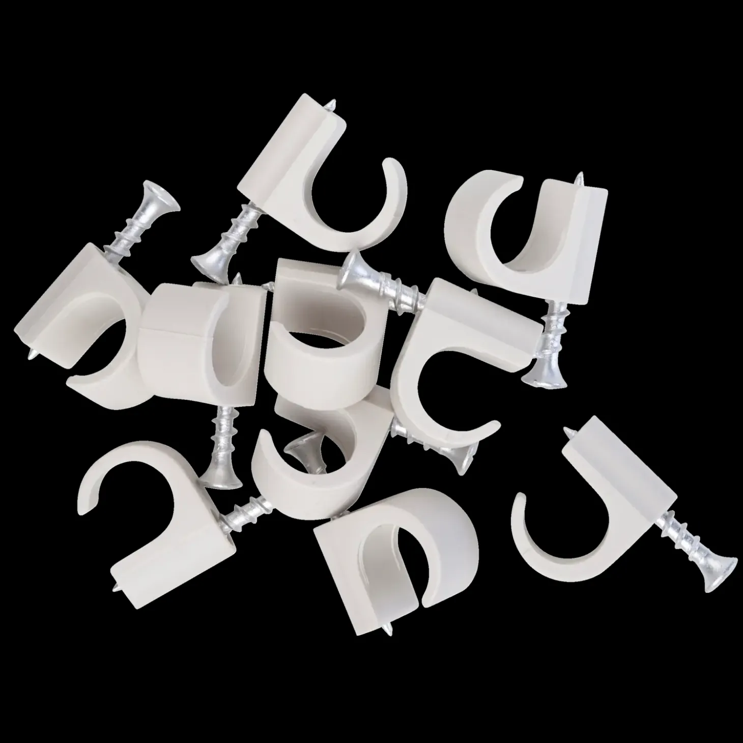 E-Line Skruecllips kan skruen gå direkte ind i mur eller beton. Skrueclips anvendes til rund ledning.