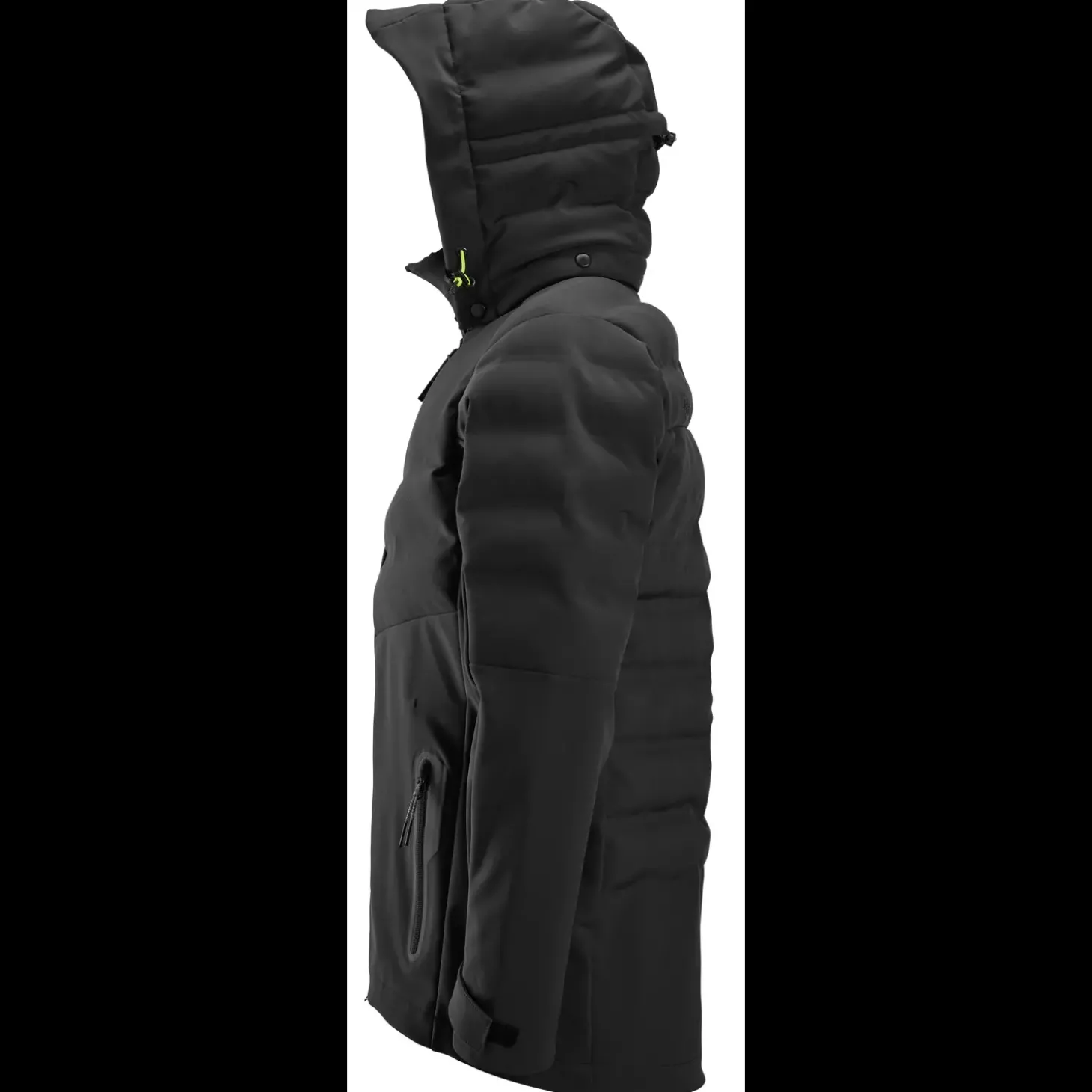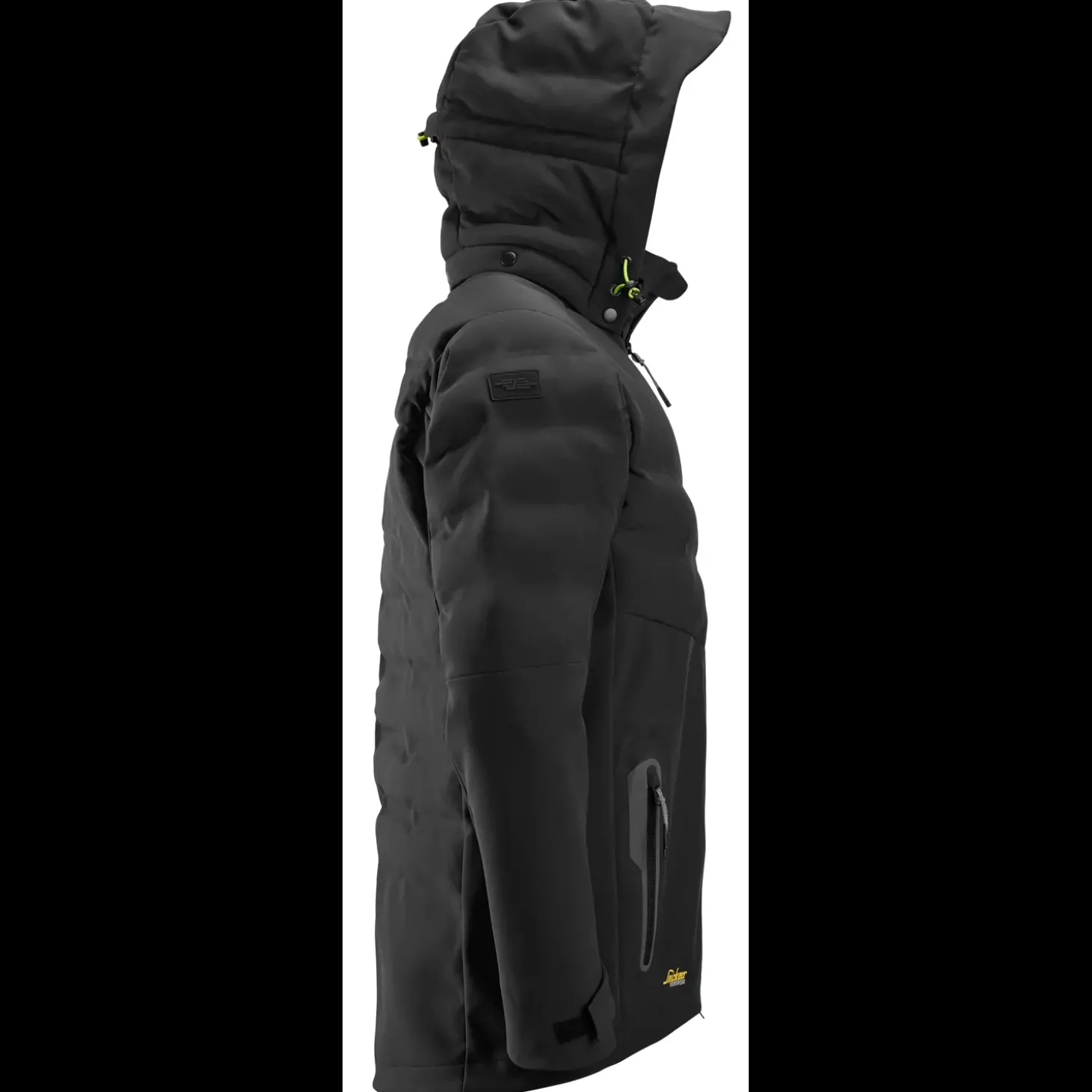 Teknisk avanceret arbejdsjakke i et 3-lags vindtæt materiale med jersey indvendigt og vandafvisende overflade uden fluorkarbon. Jakken har også svejsede kanaler med isolerende polyesterfyld på skuldre, øvre del af kroppen samt hætte, hvilket gør den ekstra varm. Den alsidige jakke har derudover to lommer til at varme hænderne i, aftagelig hætte samt mulighed for justering ved ærmeenderne og elastik forneden, der giver en optimal pasform.