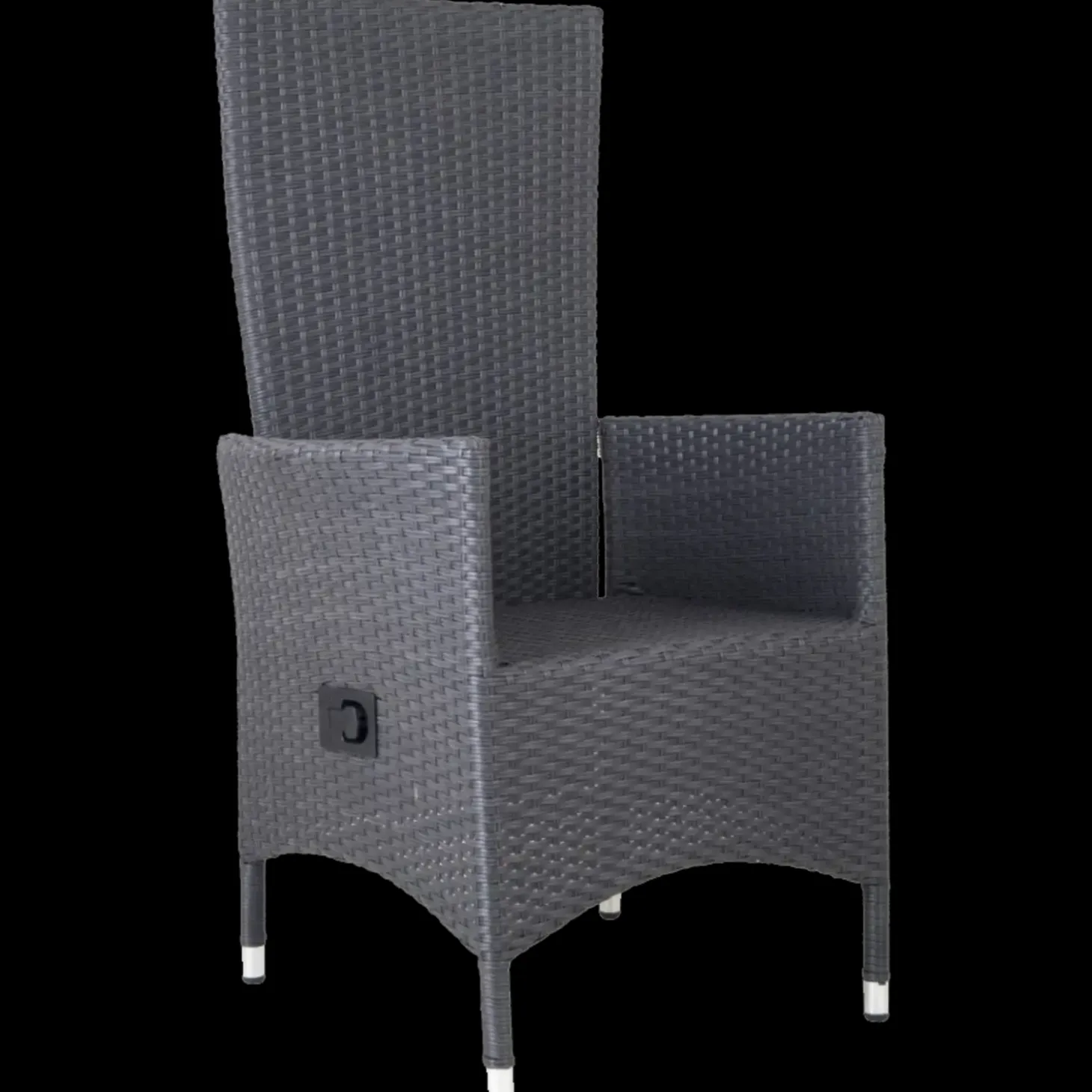 Justérbar havestol med høj ryg i sort børstet PE-flet.Trinløs indstilling af ryggen.