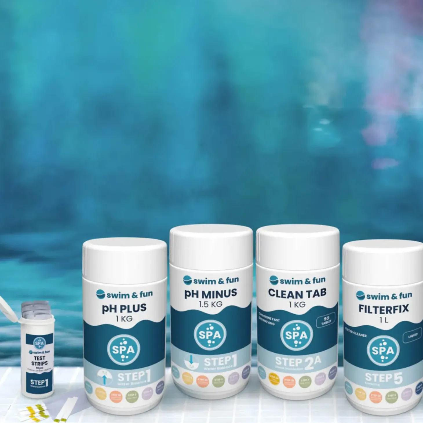 - CleanTab er en hurtigopløselig og pH neutral tab, som anvendes når spabadet fyldes op, samt til løbende desinfektion.