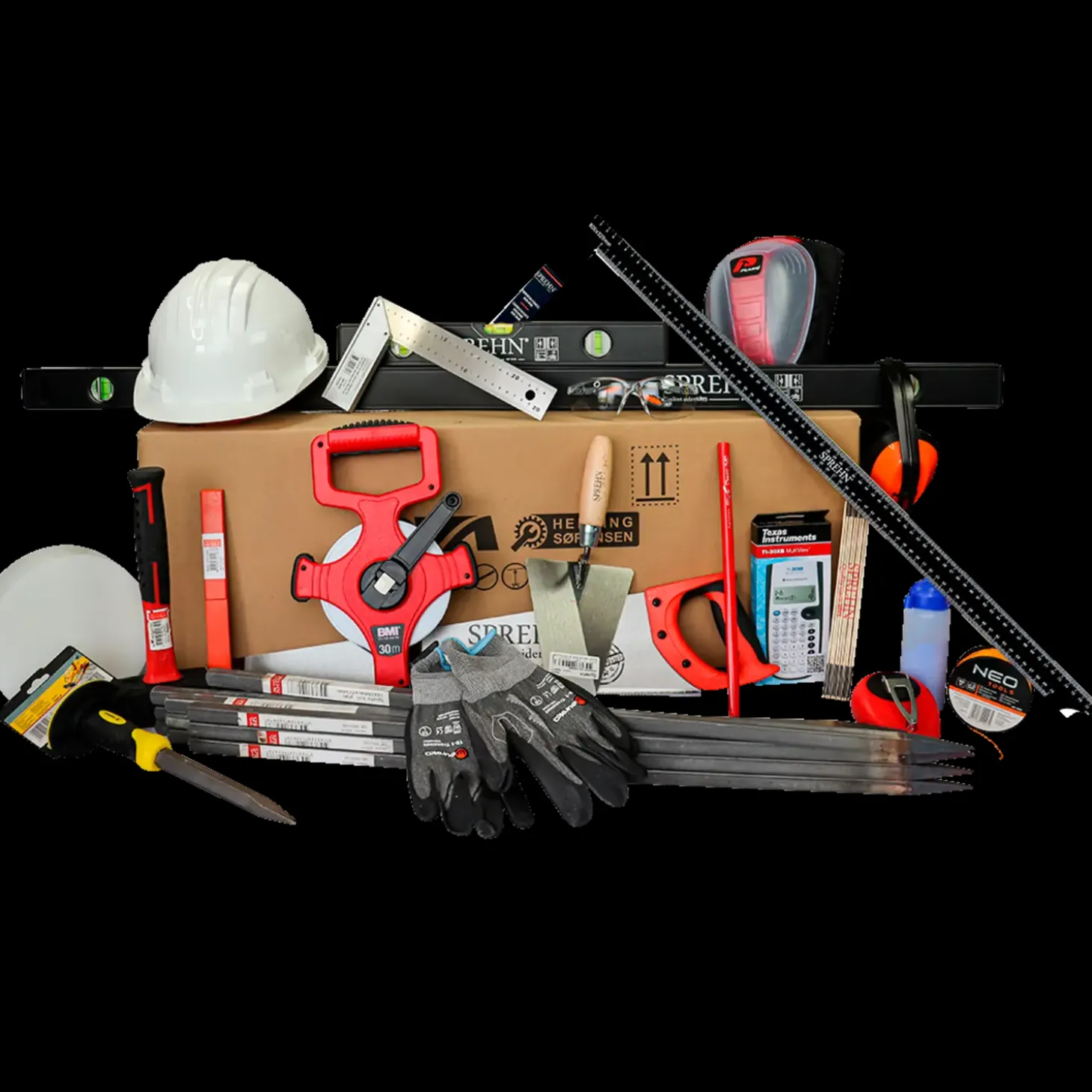 Professionelt værktøjssæt til lærlinge på anlægsstruktørspecialet. Sættet indeholder de værktøjer, som foreskrives i fagskolernes værktøjsliste.