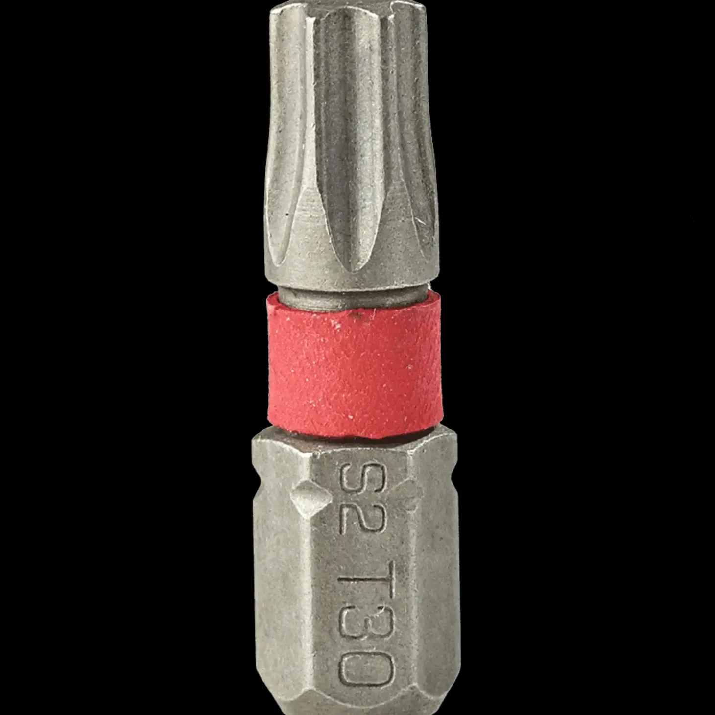 Kvalitetsbits i certificeret S2 stål sikrer lang levetid og god brudstyrke. STACOs farvebits er kodet efter bitsenes størrelse. Det gør det nemt at adskille bitsene fra hinanden og hurtigt finde den korrekte størrelse. Rød = TX30