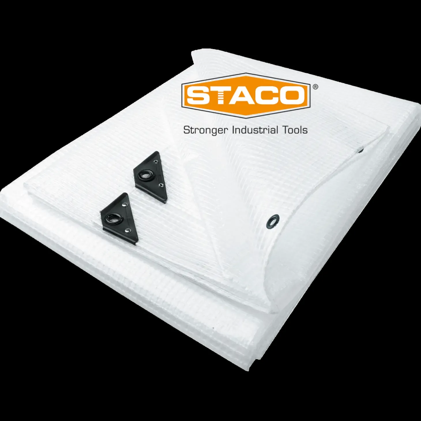 STACO Flex er en særdeles hårdfør presenning, produceret til at klare opgaver af industriel karakter. Presenningen har en meget høj brudstyrke takket være det ekstra kraftige armeringsnet. De særligt forstærkede hjørnestykker (monteret med rustfri stålstifter) sikrer presenningen.