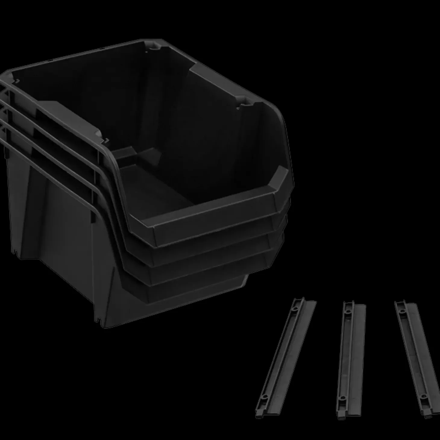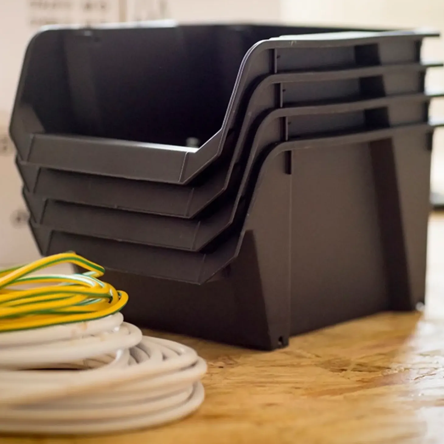 Praktisk bakker i plastik til montering på væggen eller stabling ovenpå hinanden.
