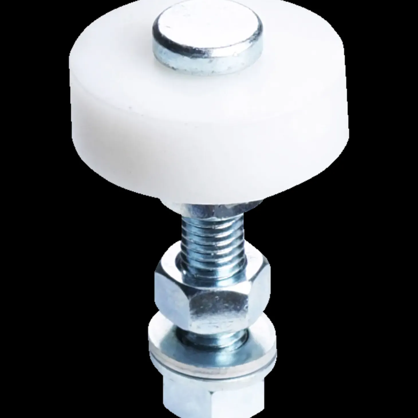 Justerbar 12 mm gevind med slagfast nylon rulle ø 50 x 16 mm. Kan anvendes til montage ved gulv, væg, og ned støbning